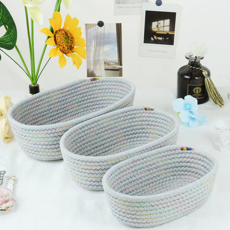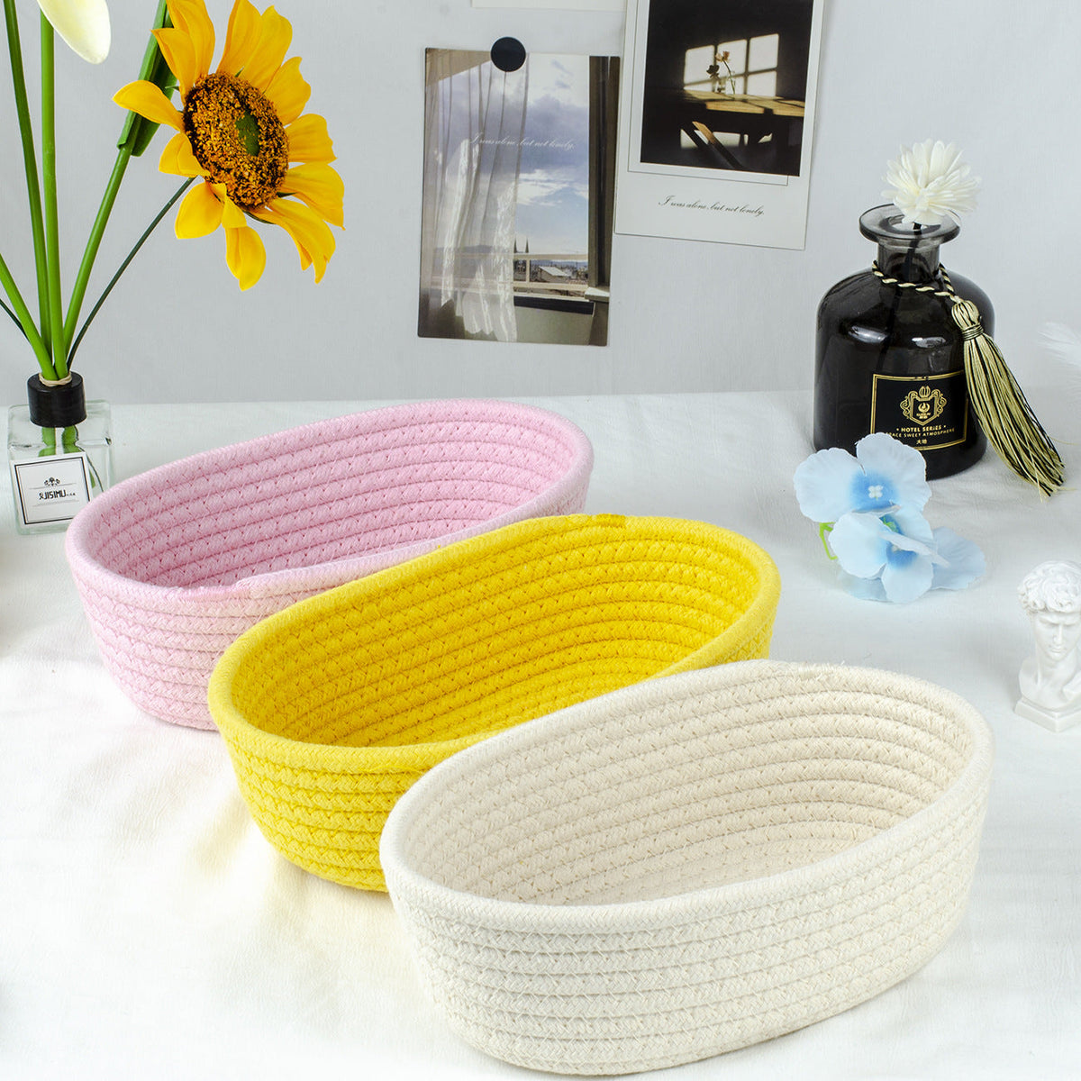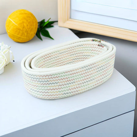 This modern woven storage basket offers the perfect balance of function and style. The natural cotton rope material is soft yet sturdy, ensuring safe storage for delicate items. Its oval shape makes it versatile for any space, while the minimalist design adds a touch of elegance to your home.