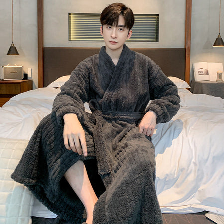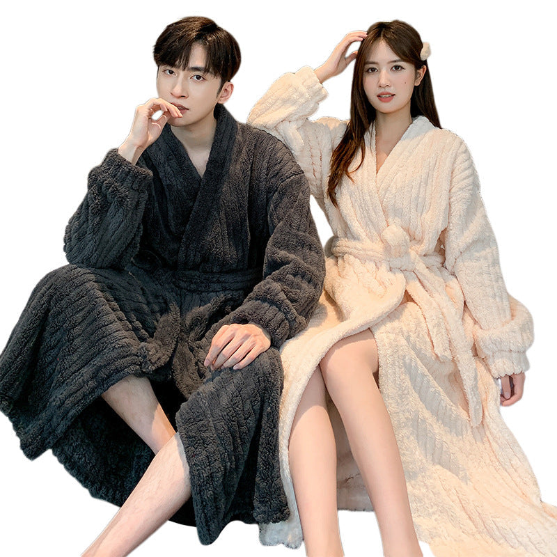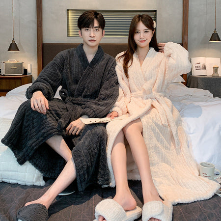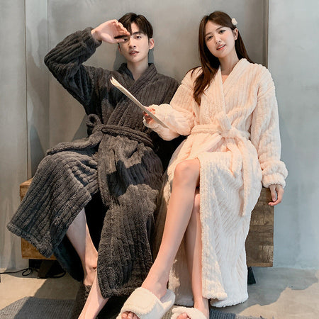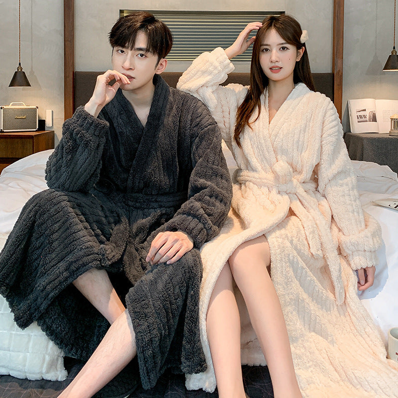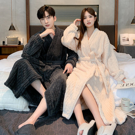 Couple’s Winter Coral Fleece Bathrobe – Thickened Fleece-Lined