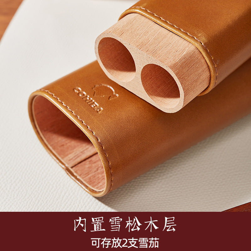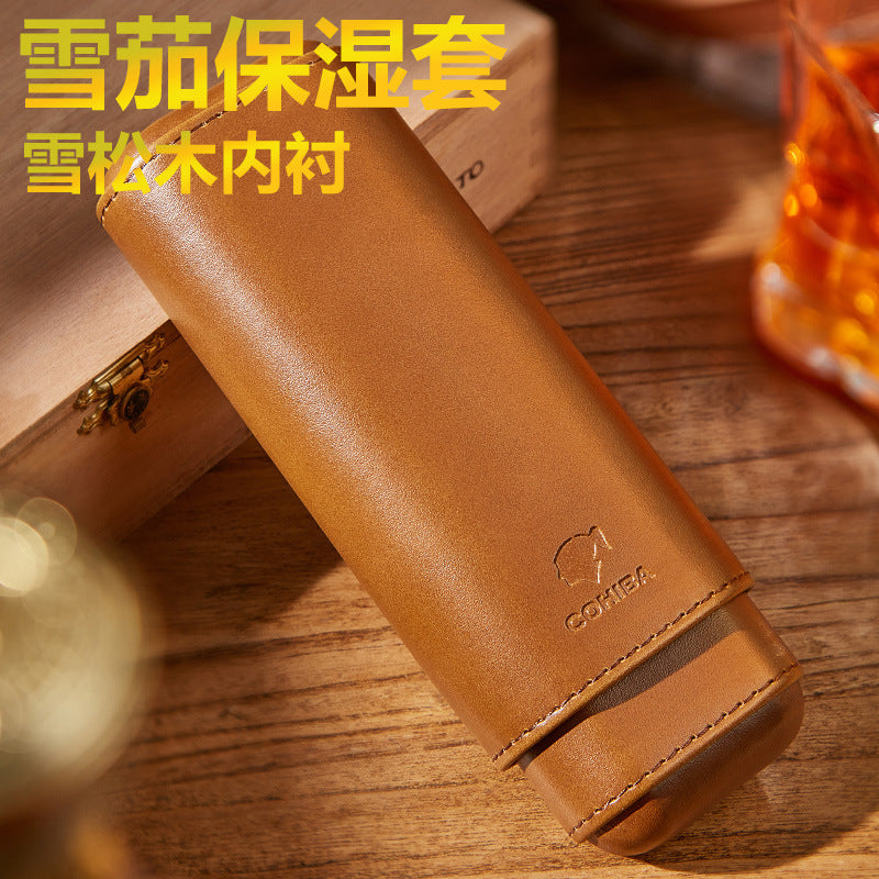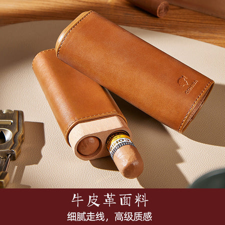 The moisturizing portable cigar case features cedar wood lining that naturally maintains humidity and enhances the aroma of your cigars. The durable cow leather exterior provides strong protection against impact, scratches, and environmental factors. With space for multiple cigars and included gift boxes, it is perfect for collectors, business professionals, or as an elegant gift.