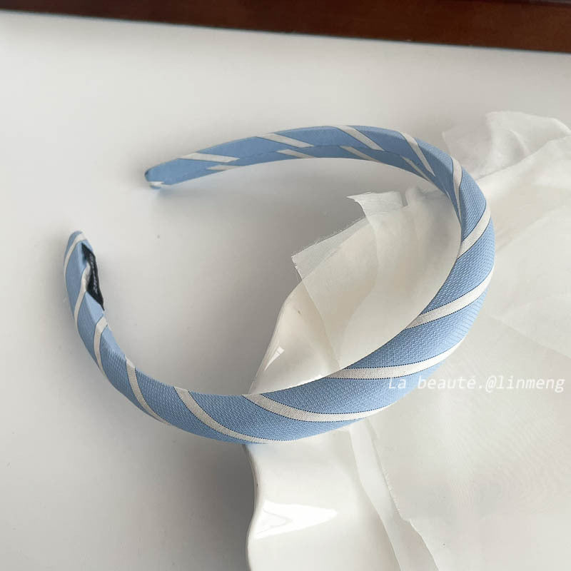 Cream Blue High Cranial Headband – Trendy Hair Accessory