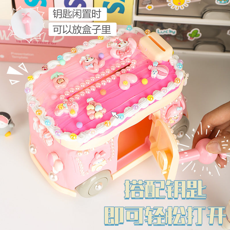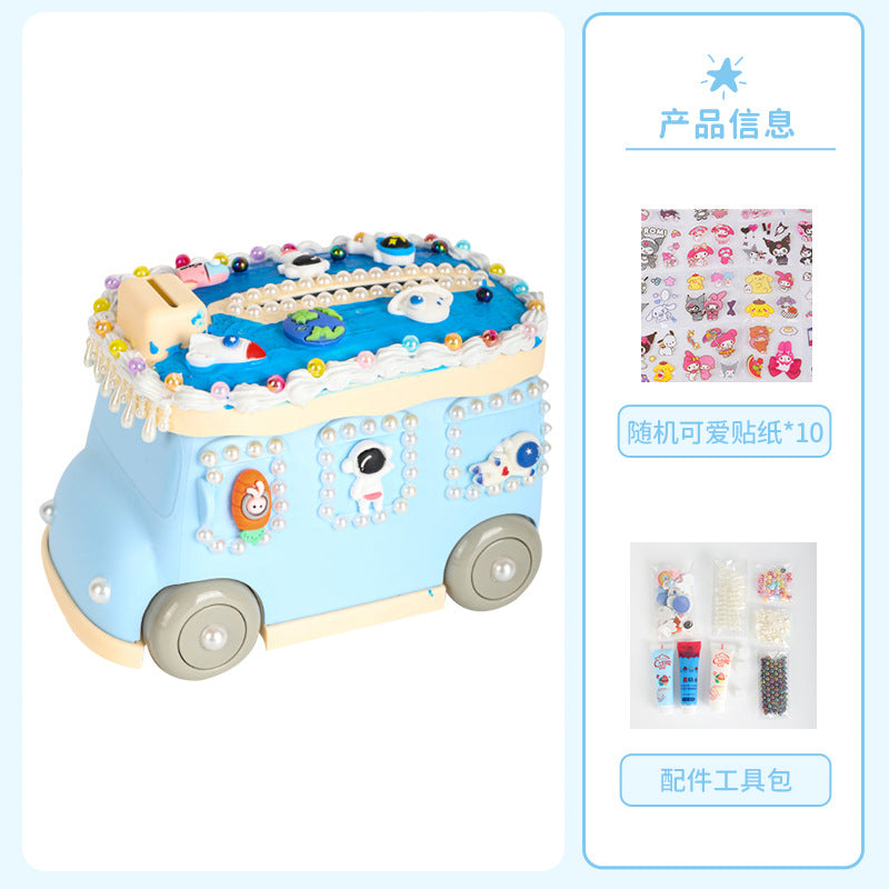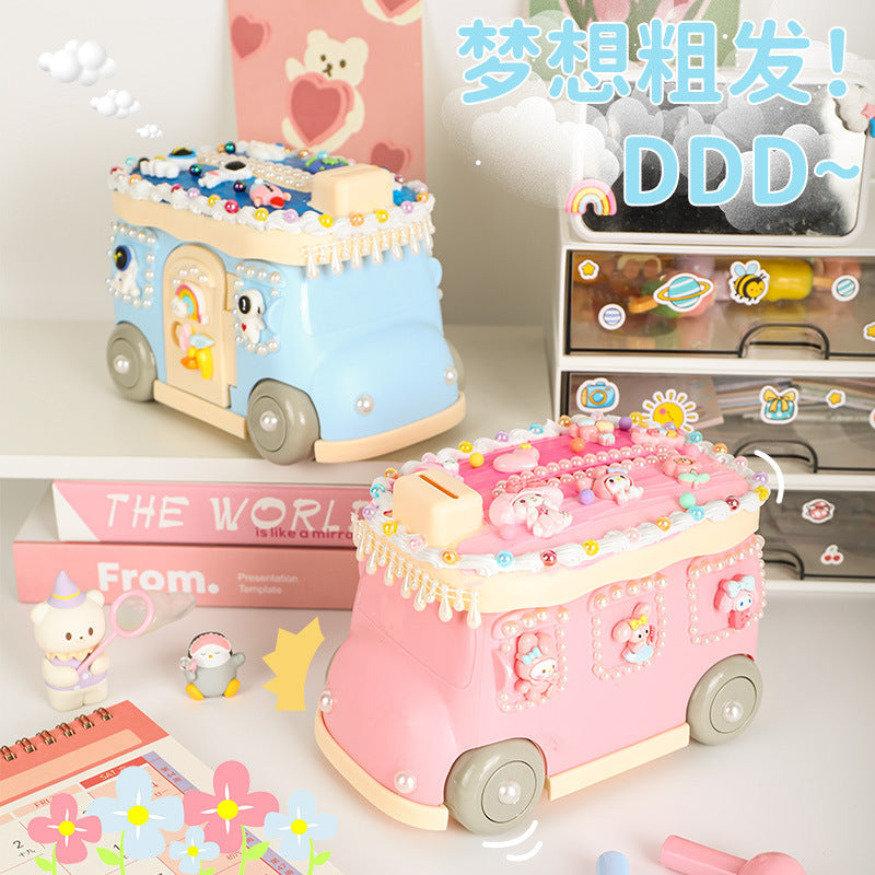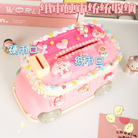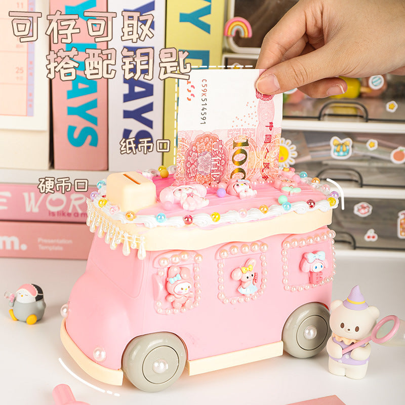 Cream Gel Cartoon Bus Piggy Bank – Kids Coin Storage