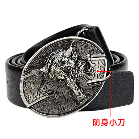 This creative, trendy men’s leather belt features a Korean alloy buckle with a hidden knife — perfect for agents, outdoor lovers, or anyone who wants extra security on the go.