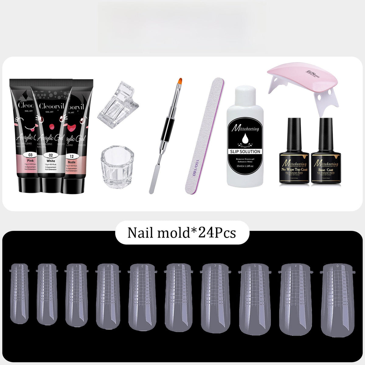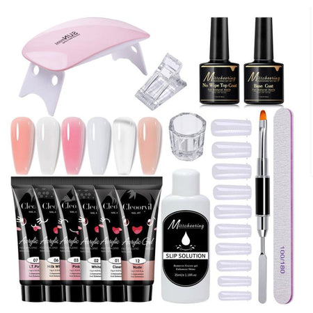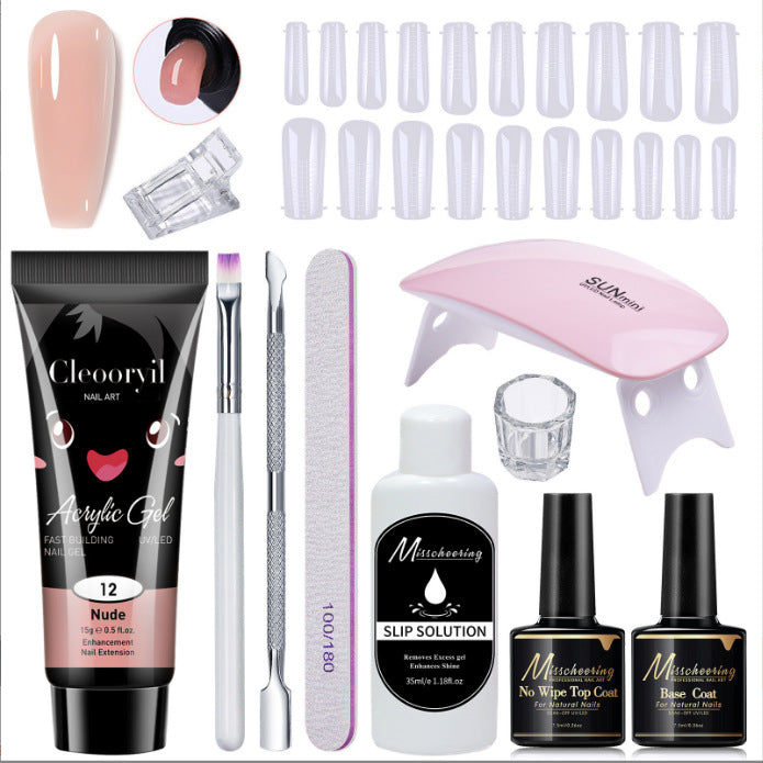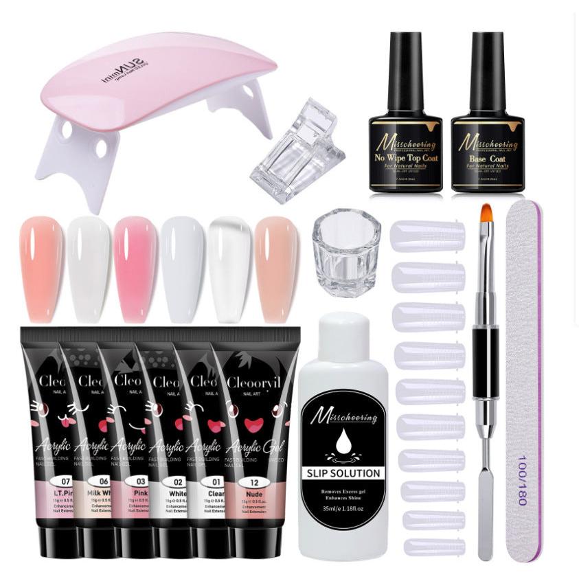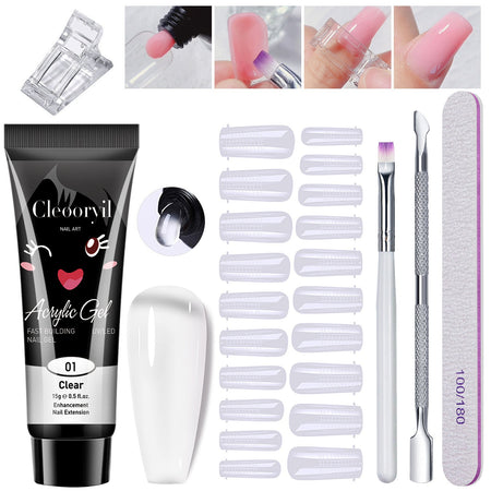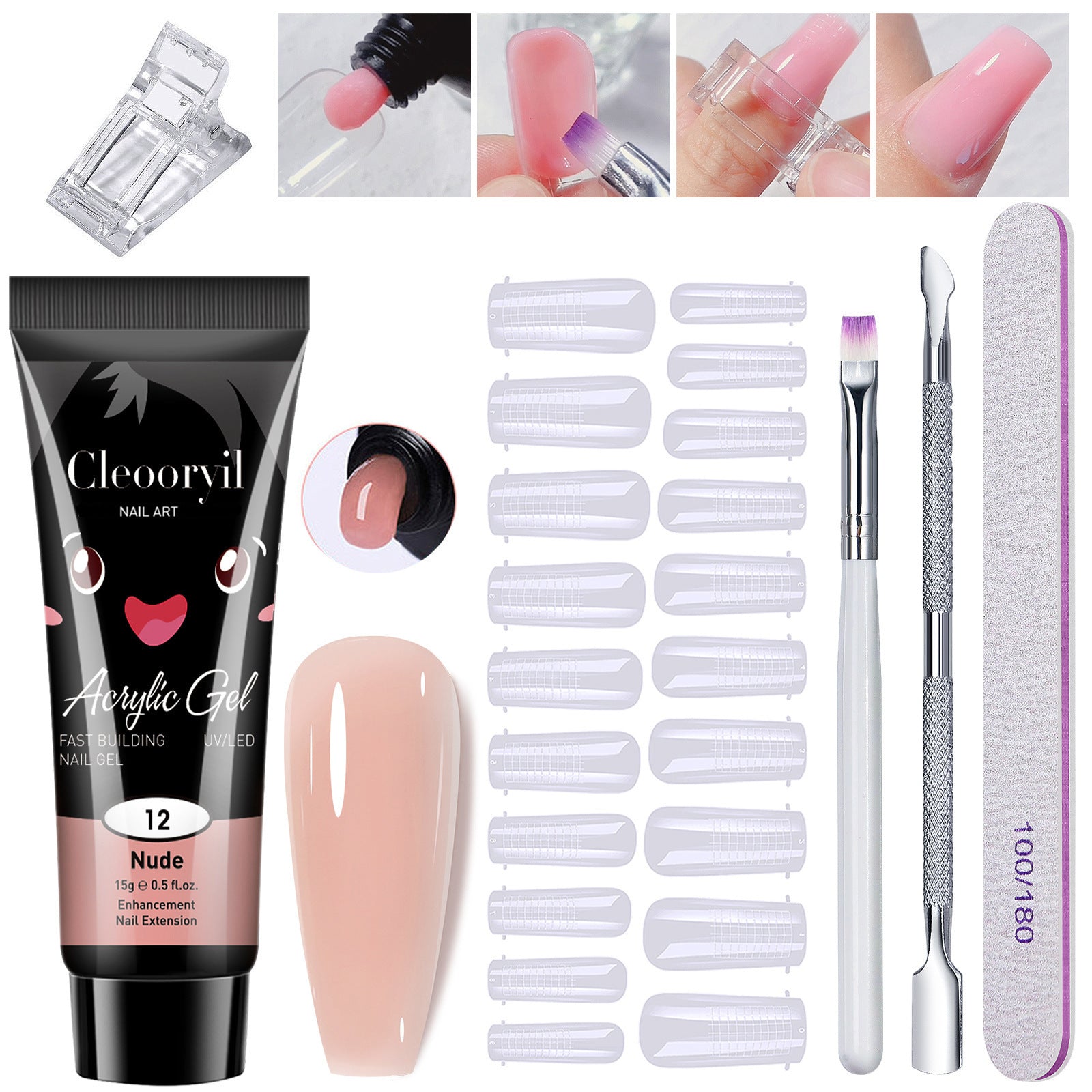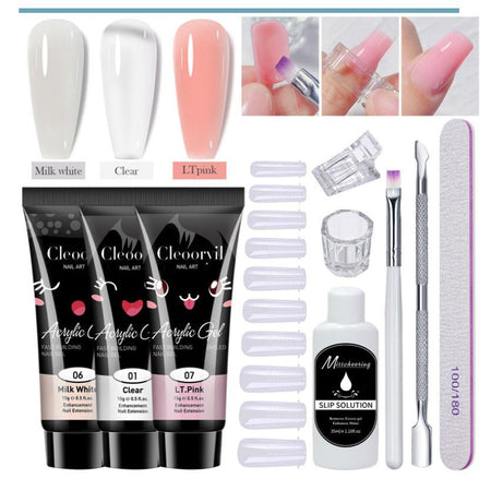This complete set includes 12 pieces, featuring 15ml extension glue, durable nail molds, a precision brush, and other essential tools for perfecting nail shapes and styles. The high-quality crystal extension glue is ideal for building strong, long-lasting nail tips with a smooth, bubble-free finish ✨🧴.