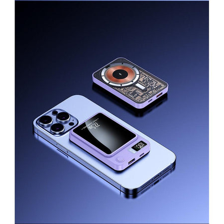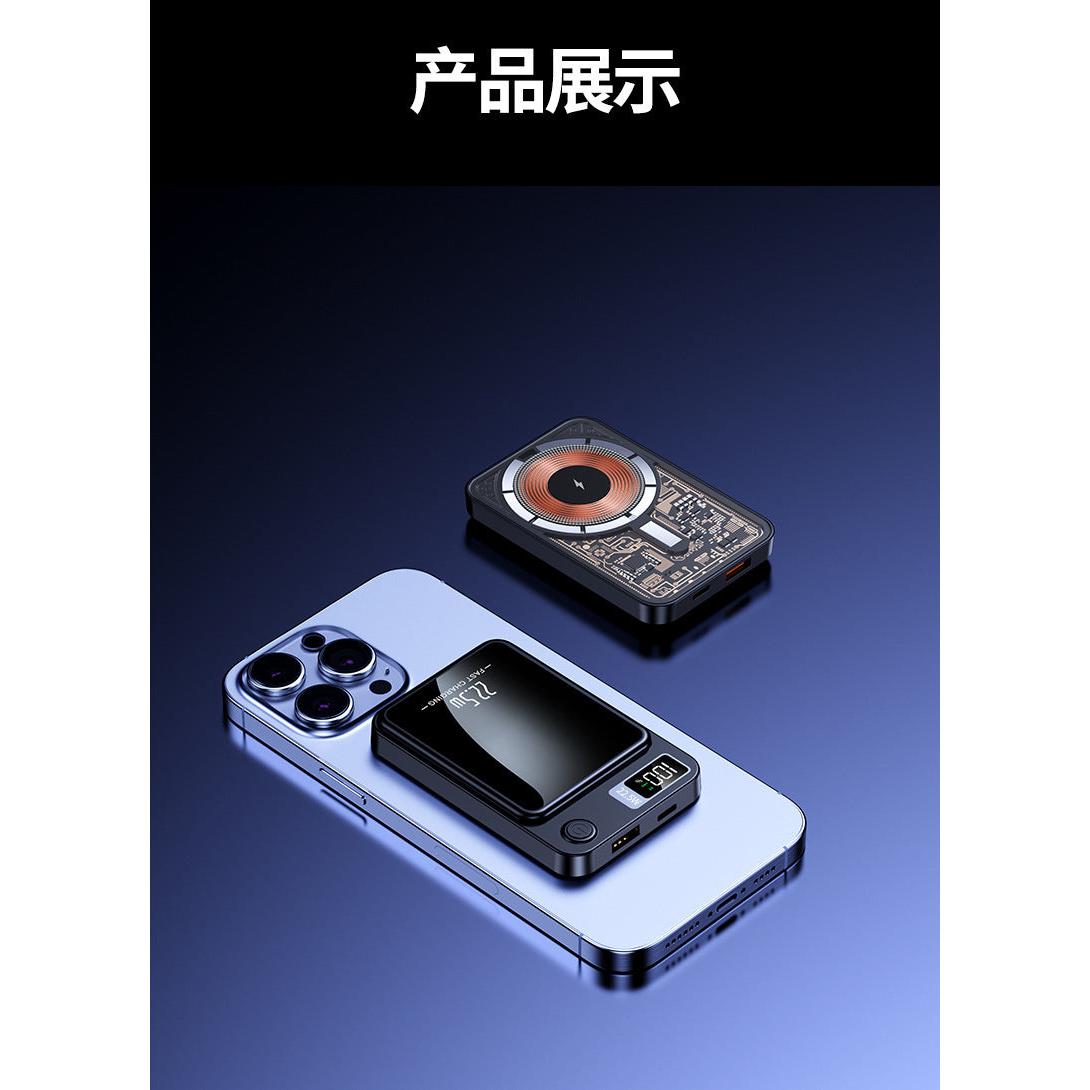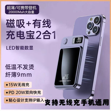 Stay powered on the go with this Cross-Border 20000mAh MagSafe Magnetic Wireless Power Bank. Combining ultra-large capacity, 22.5W fast charging, and two-way charging, this mini power bank is perfect for travelers, professionals, and tech enthusiasts. Its magnetic MagSafe design keeps your device securely attached while charging, making it a convenient and portable solution for smartphones and other devices.