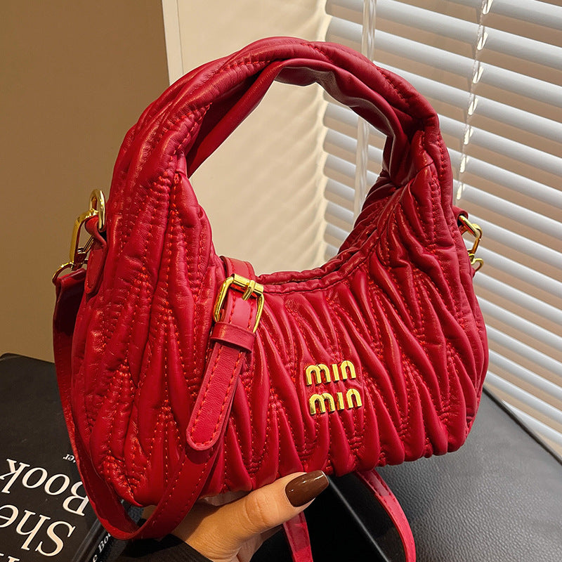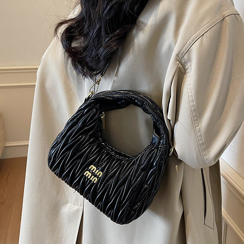 Stay ahead of the fashion curve with the Women’s Pleated Crescent Shoulder Bag. This 2025 trendy dumpling-inspired design combines soft pleats, embroidered detail, and a stylish crescent shape to create a truly eye-catching accessory.