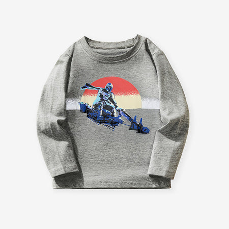 Cross-Border Boys Long-Sleeved T-Shirts Print Round Neck!