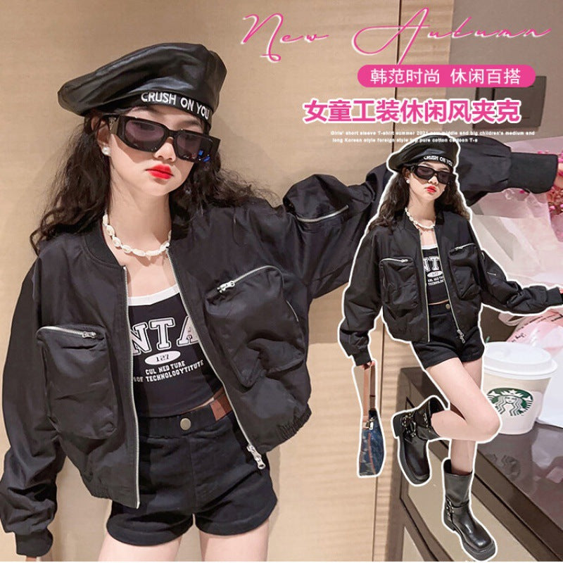 Girls Short Pilot Jacket Kids Autumn Baseball Coat