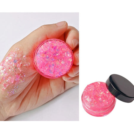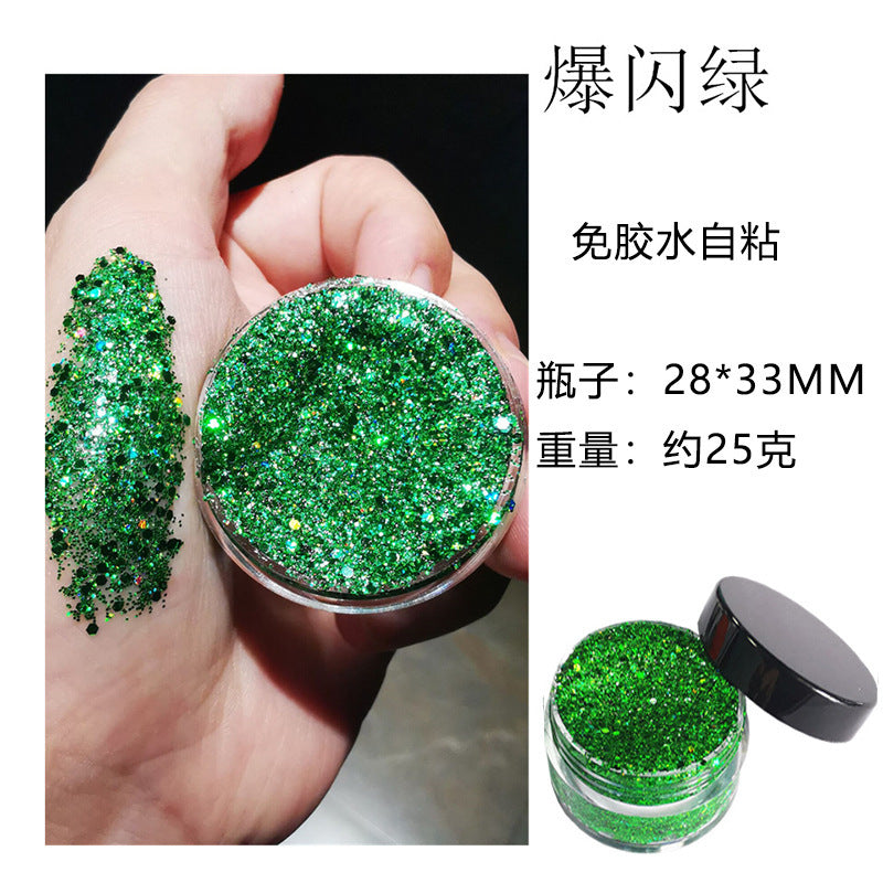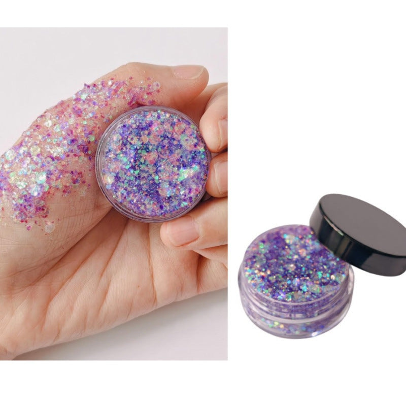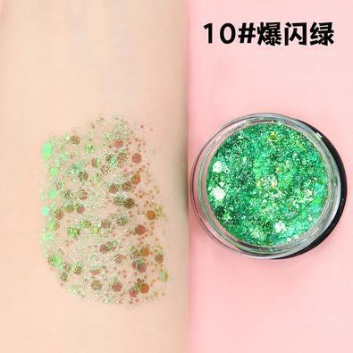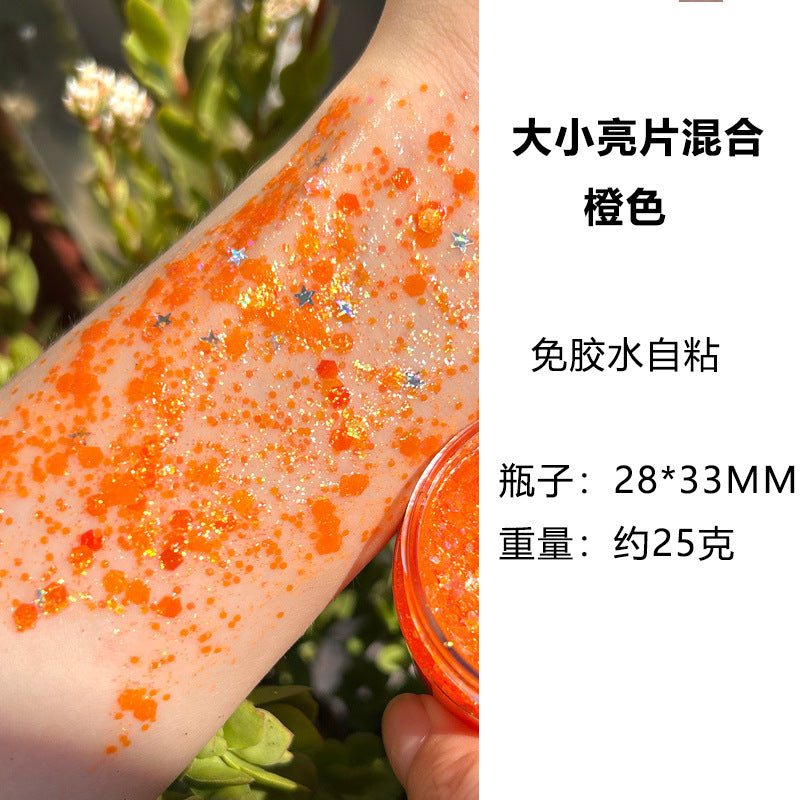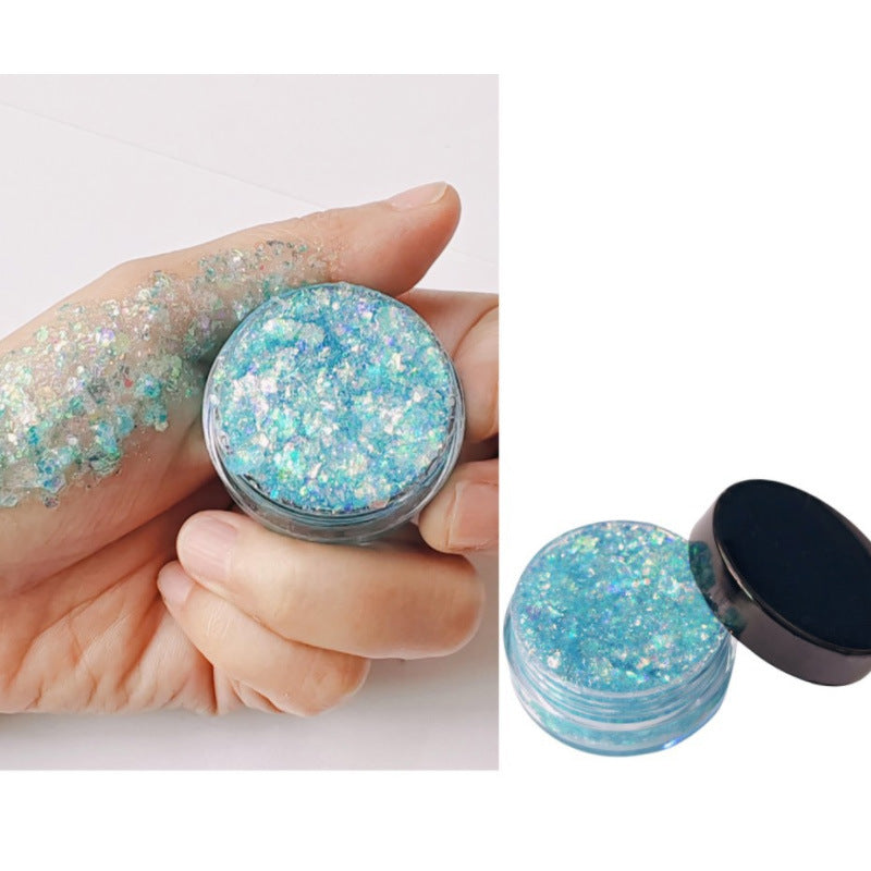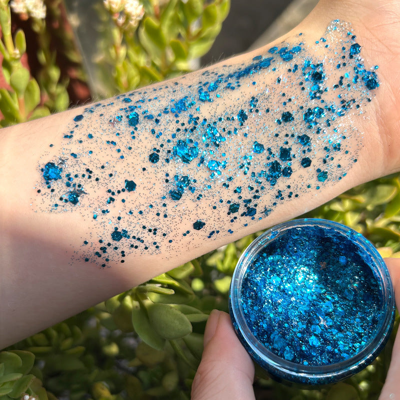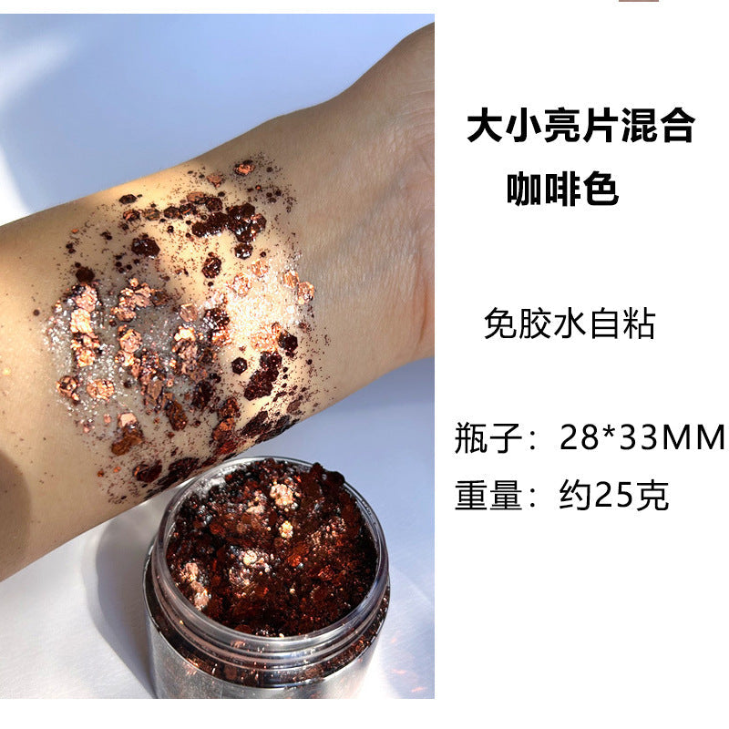Glitter eye shadow and sequins gel for vibrant stage looks