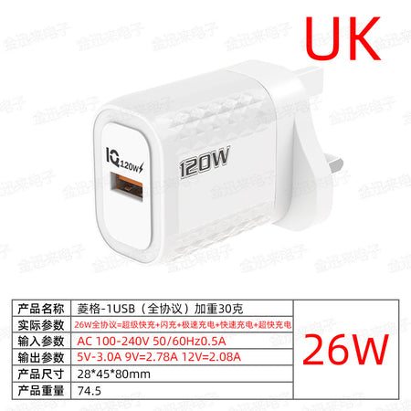 Elevate your charging experience with the Customized 120W Single U-Port PPS Fast Charger. 🌟 Designed for those who demand efficiency and style, this charger offers cutting-edge technology and a sleek design.