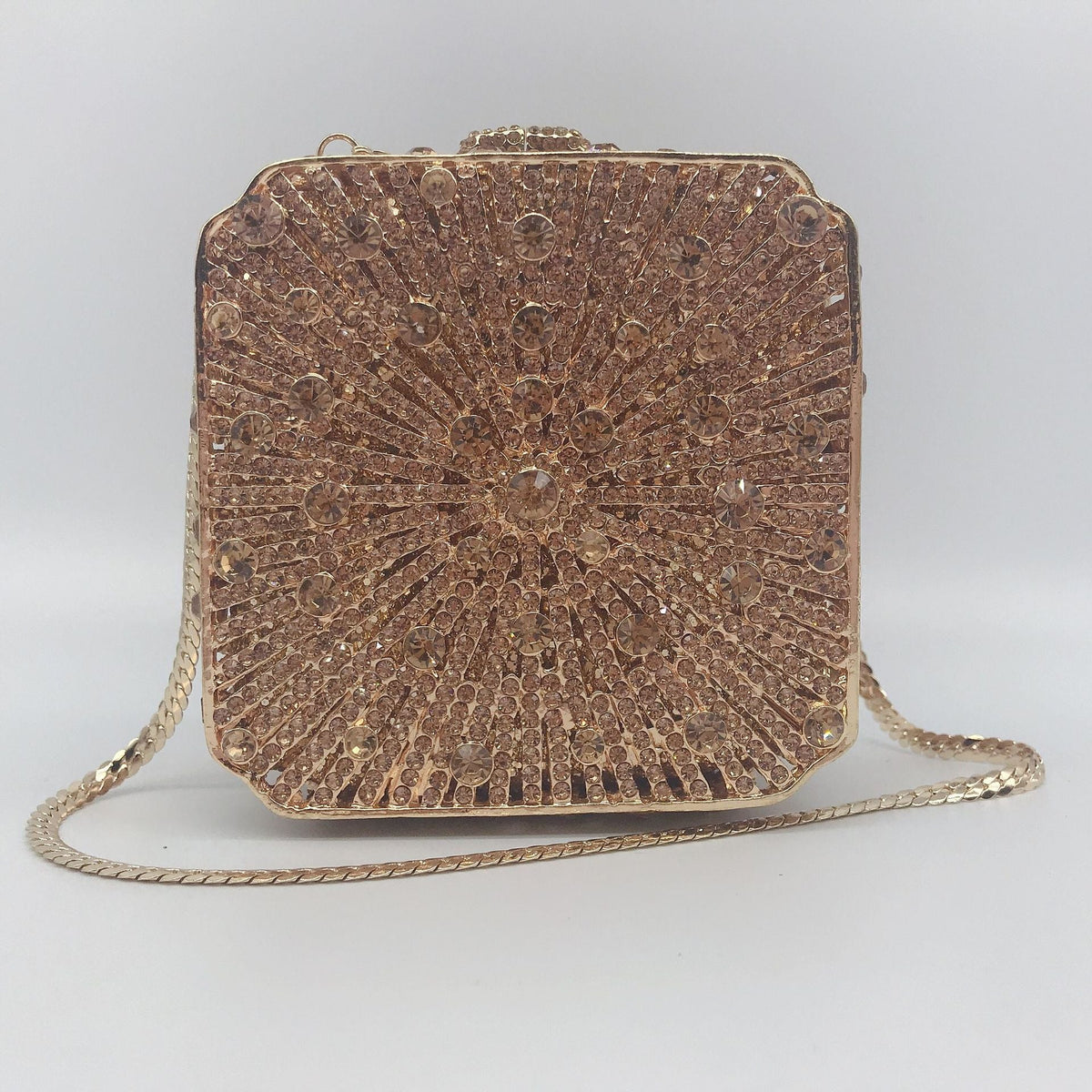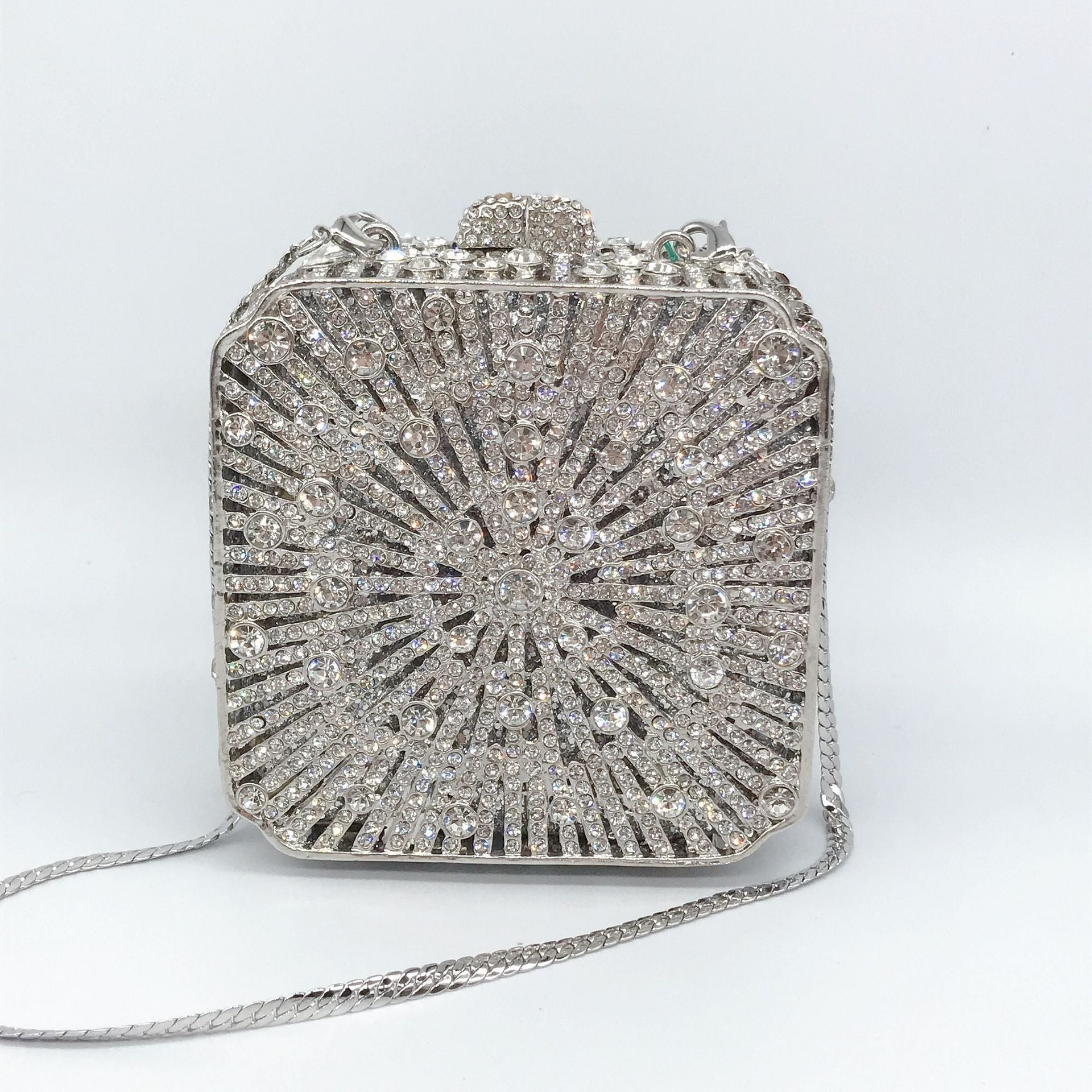 π² Clean lines, max shine! This diamond-encrusted box clutch brings structured sparkle to any celebration.