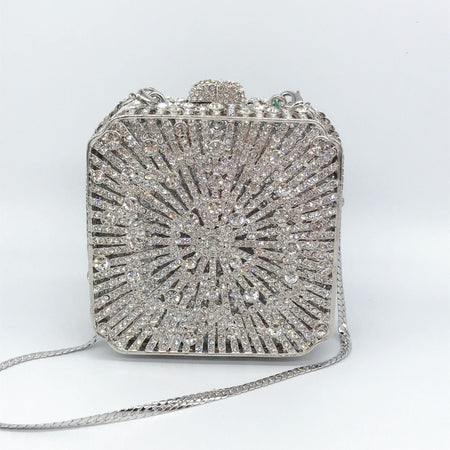 Diamond Box Clutch β Square Hollow Metal Banquet Bag