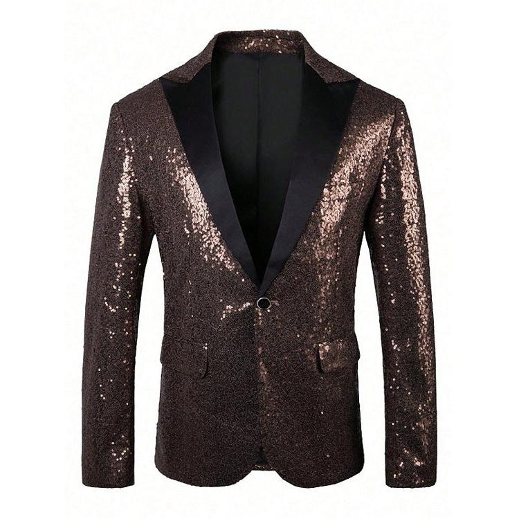 Shine under the spotlight with this men’s golden sequin suit jacket. Perfect for performances, stage appearances, or nightclub events, it’s designed for men who want to make a bold, unforgettable impression.