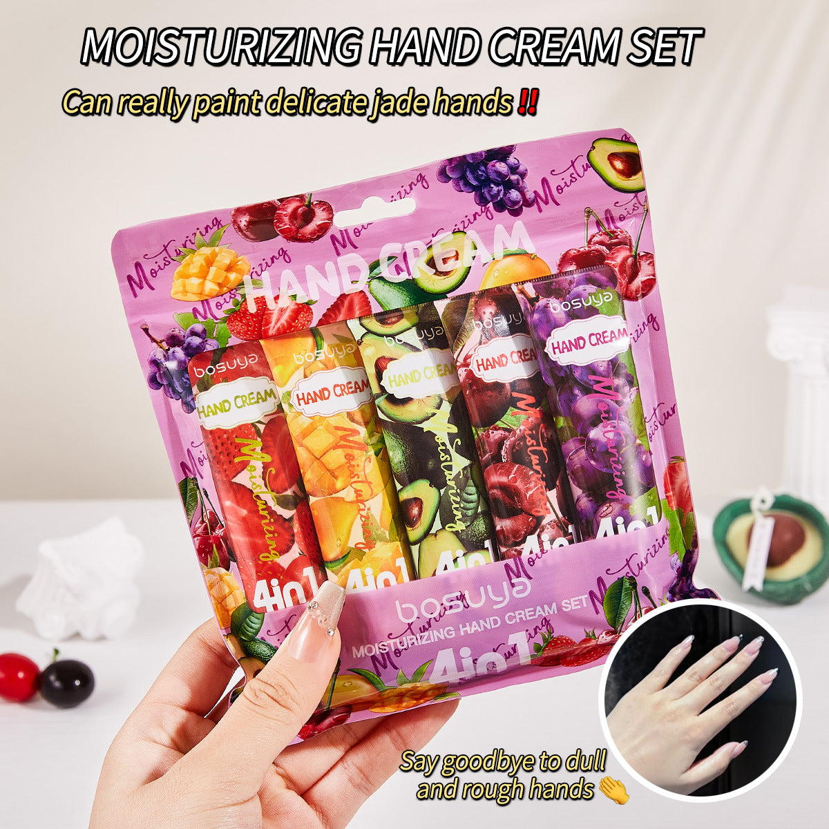 Discover ultimate hand care with the Bosuya 4-in-1 fruit hand cream, a cross-border exclusive formula designed to deeply moisturize and protect dry skin. This anti-dry hand cream blends nourishing fruit extracts with a refreshing fragrance, leaving your hands soft, smooth, and beautifully scented. ππ