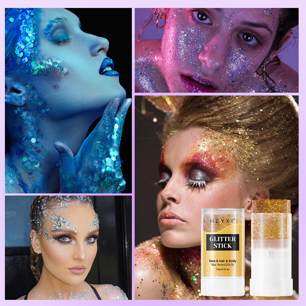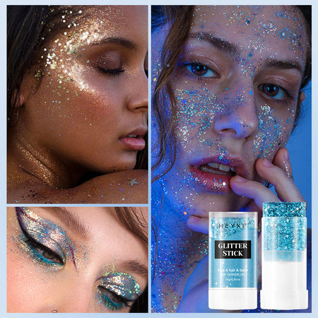 Elevate your look with HEYXI High-Gloss Sequins Glitter Powder, designed for both body and hair. Its vibrant, sparkling finish is perfect for festivals, parties, or stage performances, creating a dazzling, eye-catching appearance.