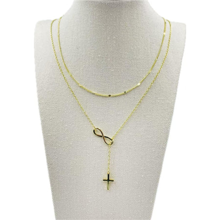 This minimalist clavicle chain features a unique figure-8 cross design, blending faith and flair. A European-American inspired piece, it's perfect for layering or as a subtle solo statement.