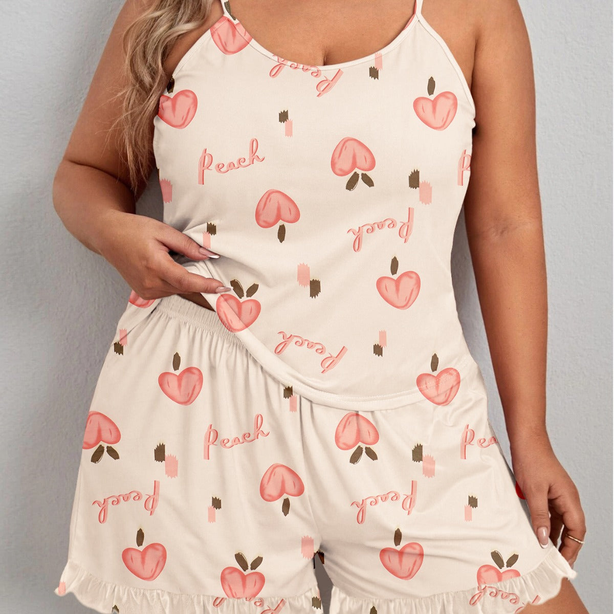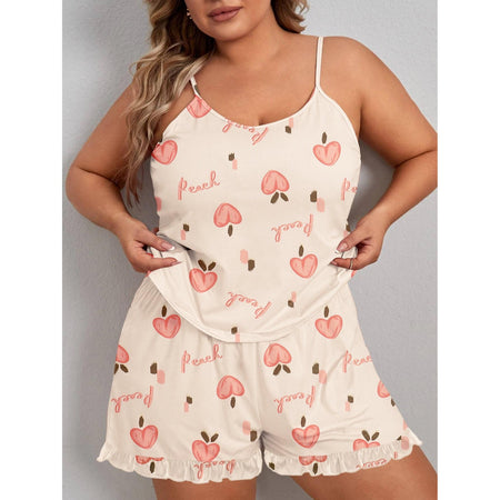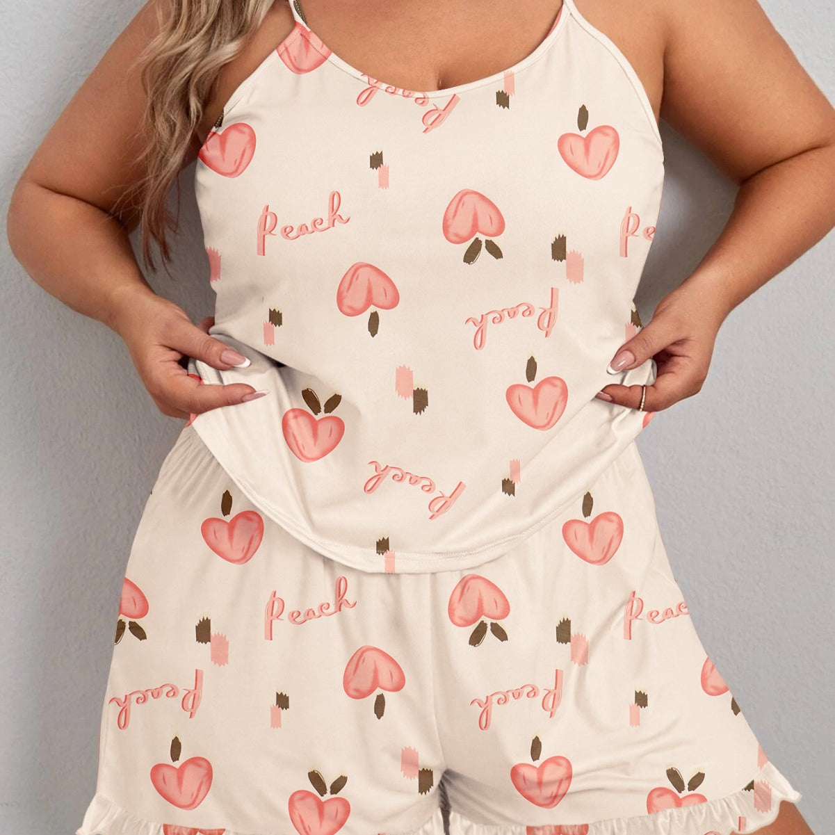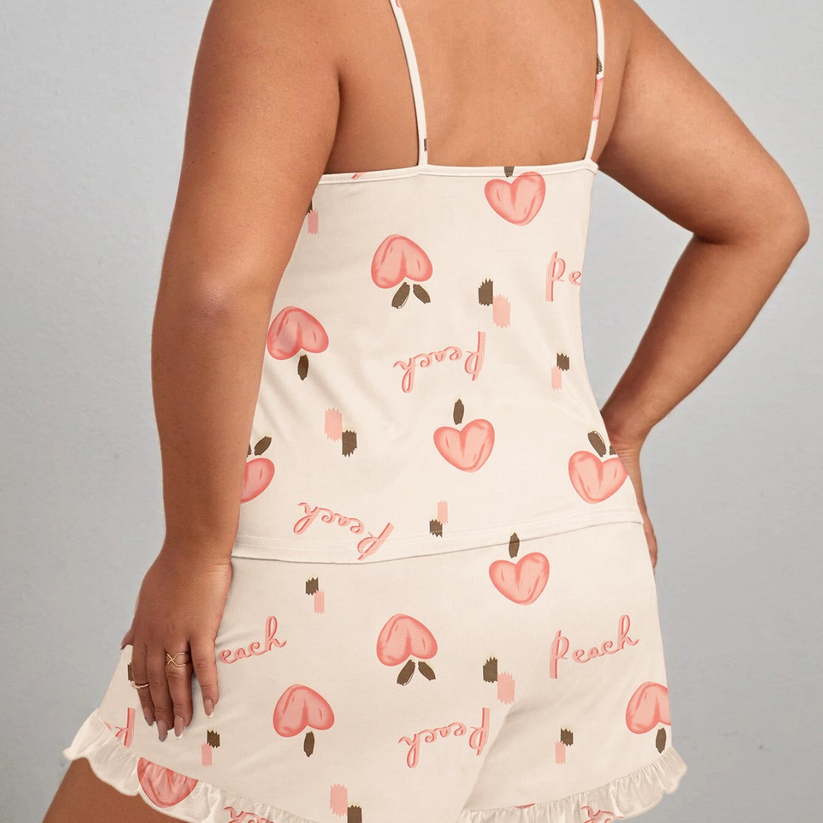 💖 Be bold, be comfy in this plus-size sling pajama set! Designed with a sweet print and relaxed fit, this summer essential is perfect for all body types. The breezy shorts and soft top keep you cool and confident 🌈🩵.