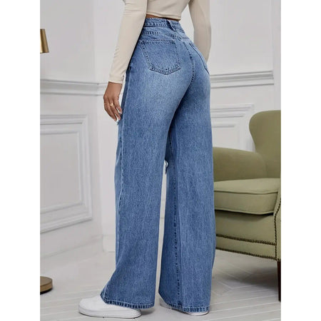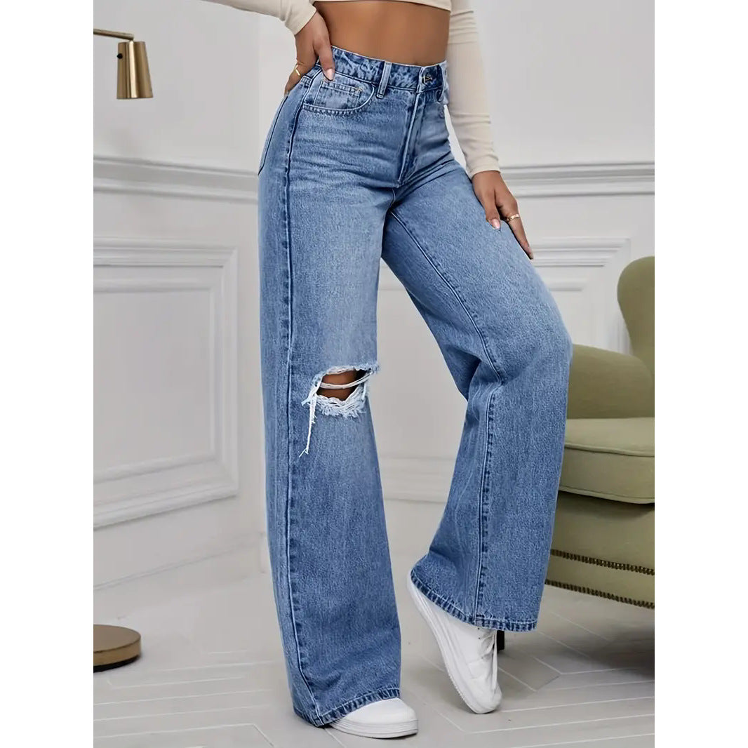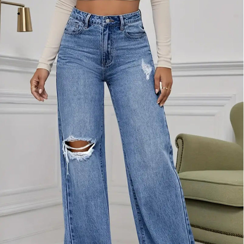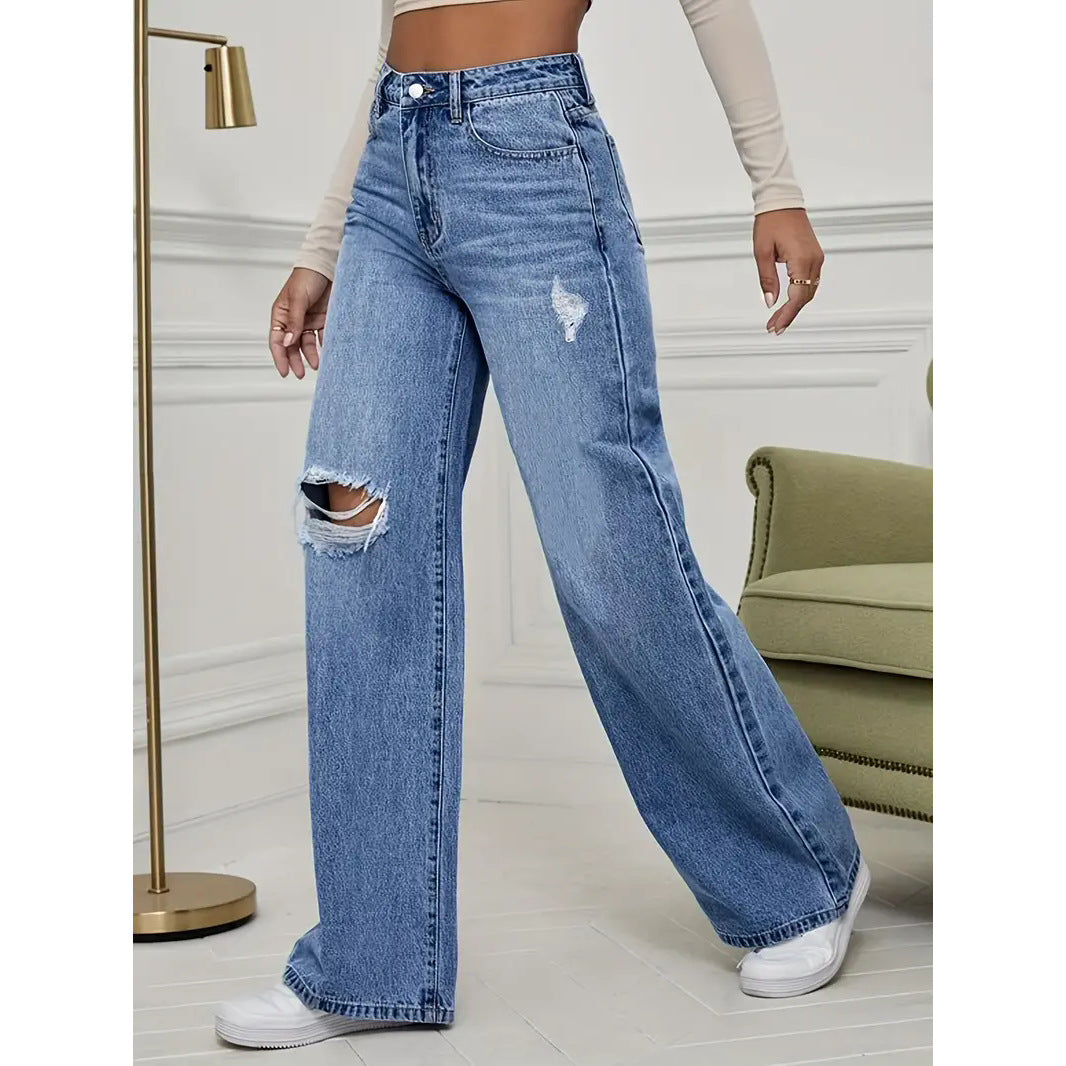Women’s High Waist Slimming Wide Leg Ripped Jeans