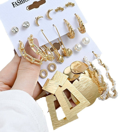 Bold Retro Vibes with Modern Elegance! This fashionable retro gold earrings set features a variety of geometric designs embellished with pearls and diamond-like accents, perfect for trendsetting women who love to mix vintage flair with contemporary style.