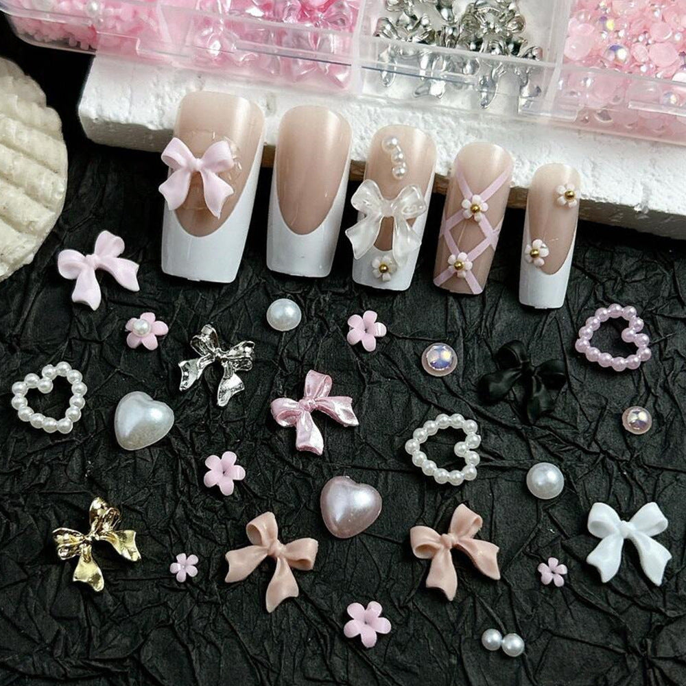 Ribbon & Butterfly Nail Jewelry Set – Alloy Pearl Love Box
