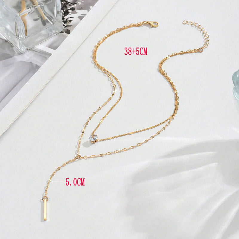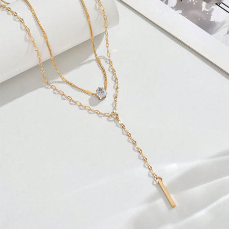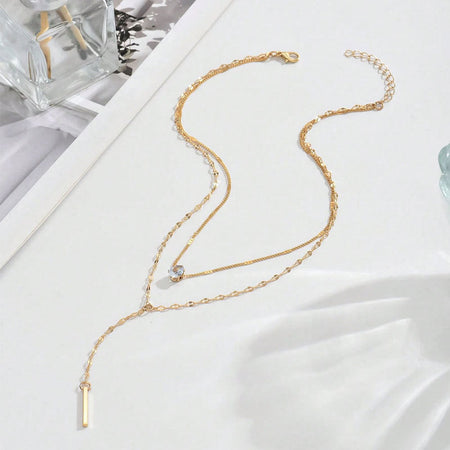 Make a statement with the Double-Layer Y Pendant Necklace, a trendy yet timeless jewelry piece for women. Its layered design and sparkling crystal zircon pendant add elegance and allure to any outfit.