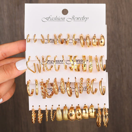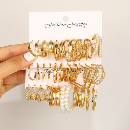Golden C-Chain Earring Set – European & American Style | Light