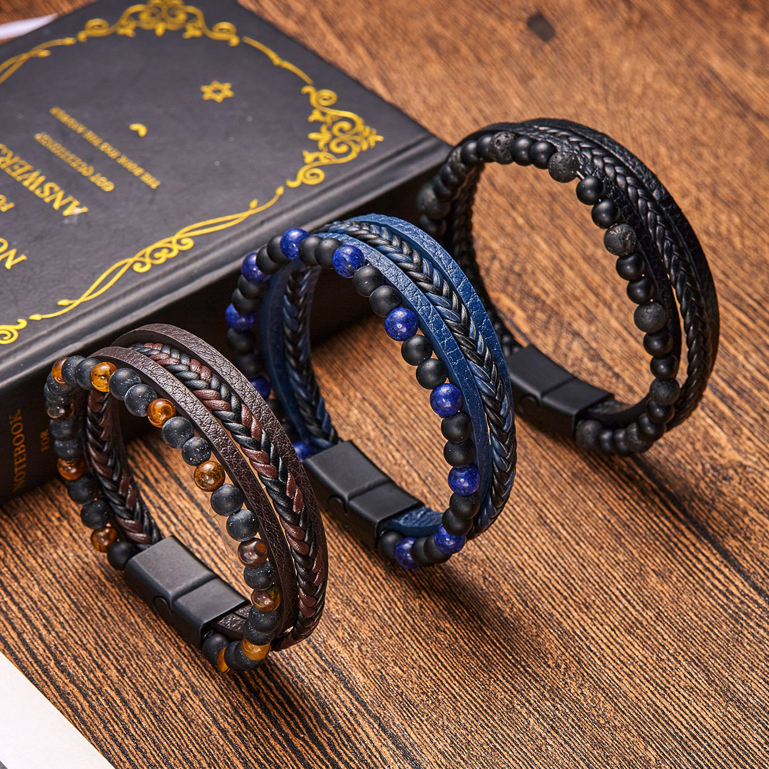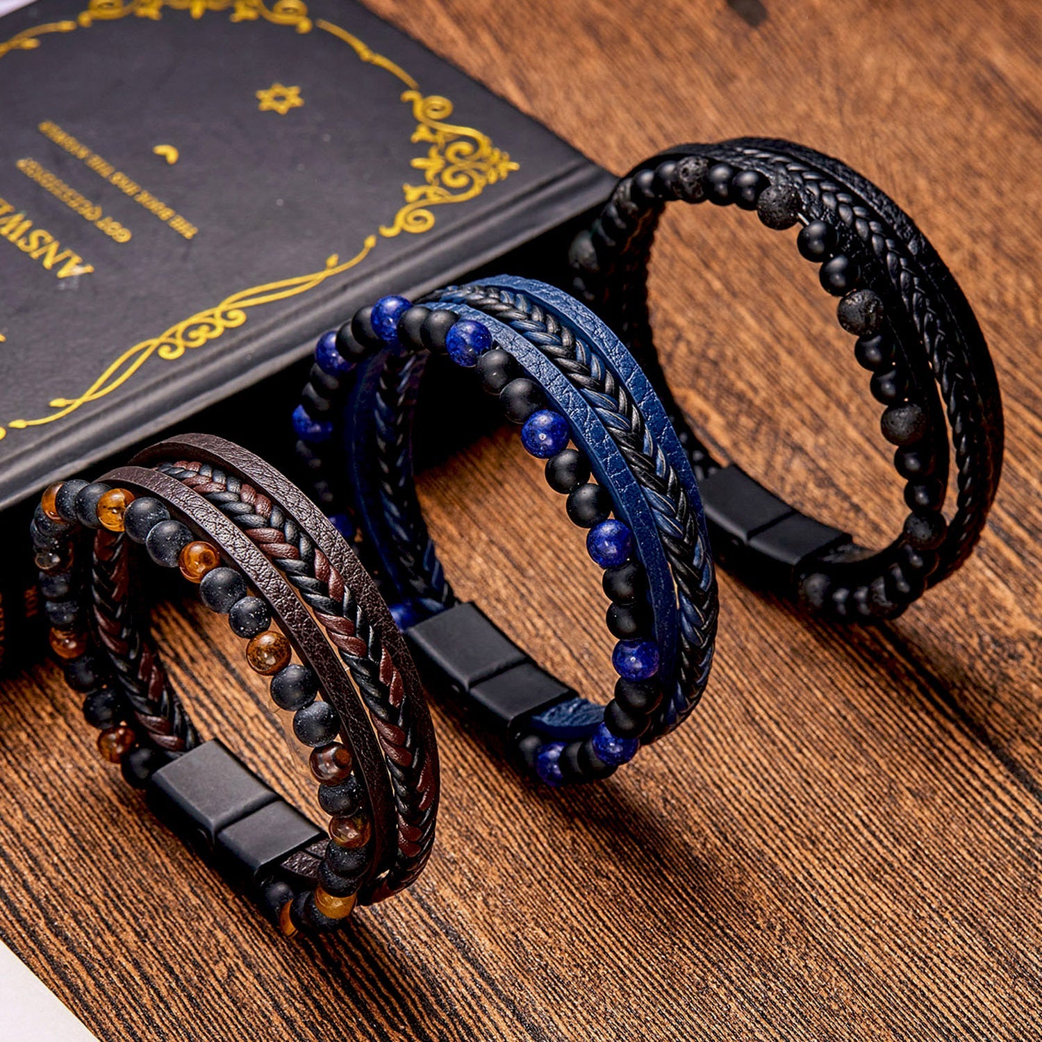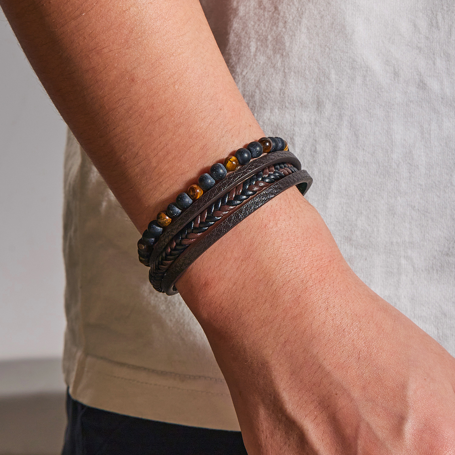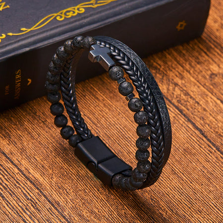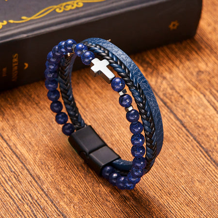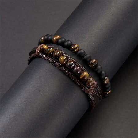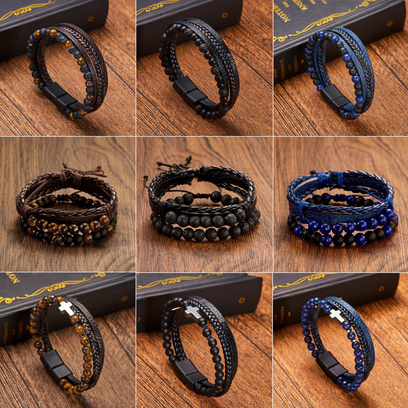 Discover the rugged charm of the Vintage Men's Multi-Layer Hand-Woven Bracelet. This handmade bracelet blends the earthy textures of natural stone beads and genuine leather for a look that speaks to your adventurous side. With its multi-layered design, it’s perfect for layering or standing out on its own.