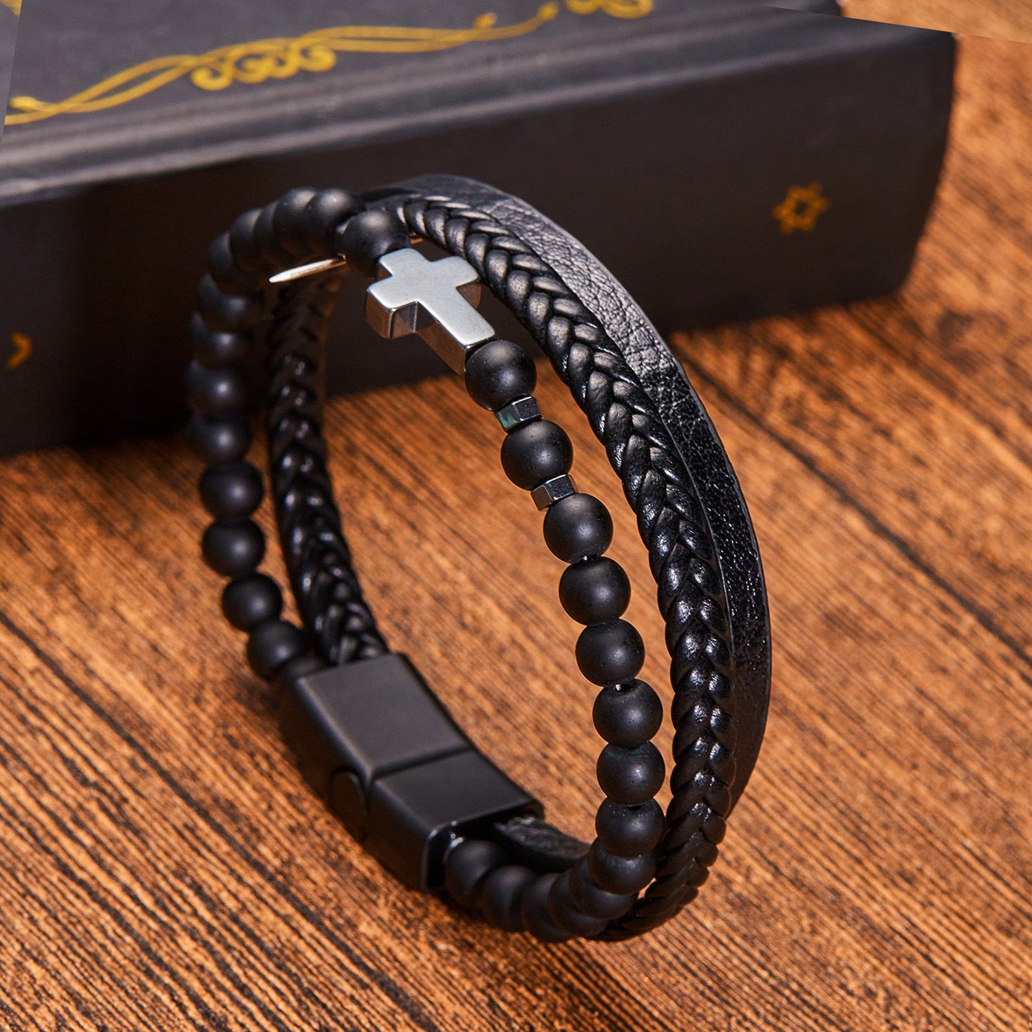 Vintage Men's Multi-Layer Hand-Woven Leather & Beaded Bracelet