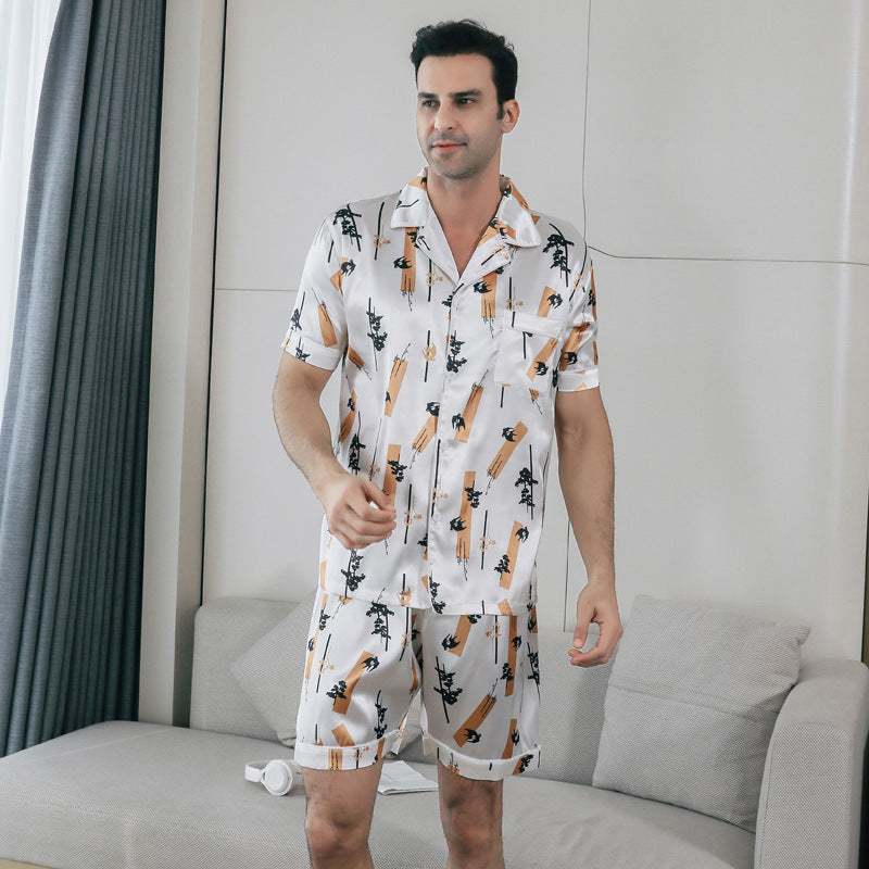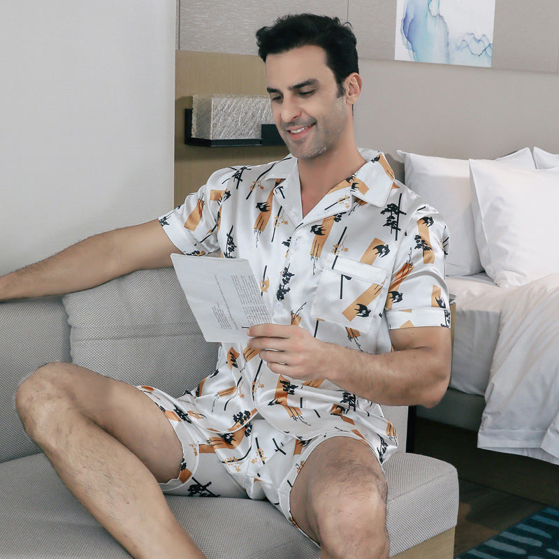 Ice Silk Men’s Pajamas – Cool & Soft Summer Short-Sleeve Set