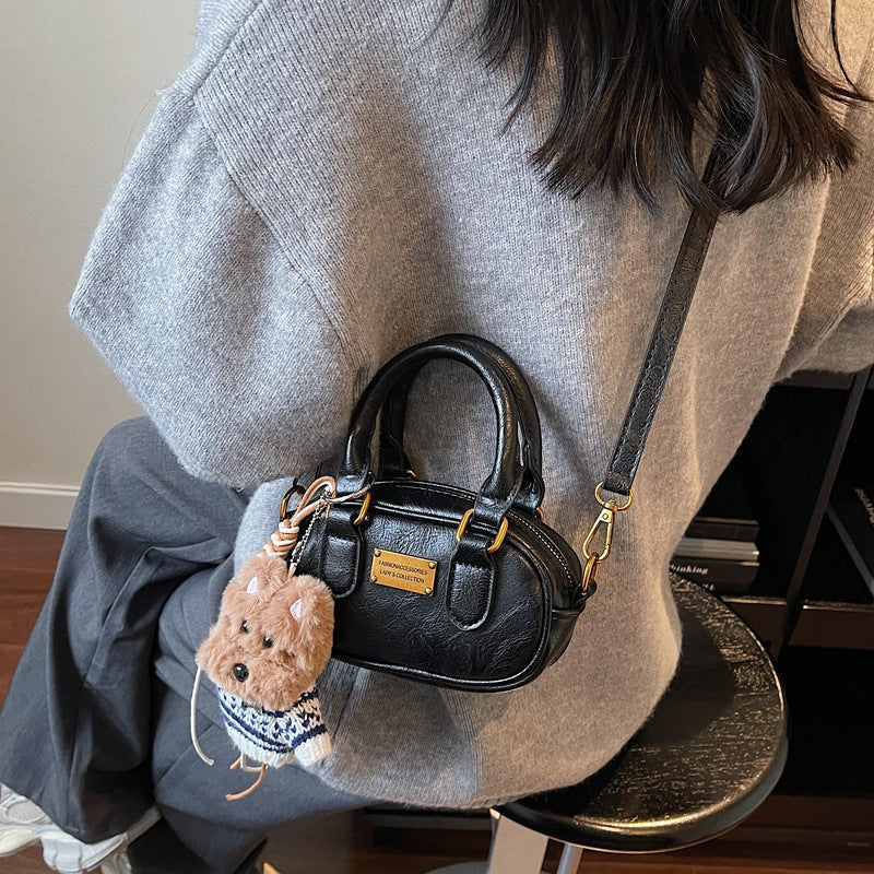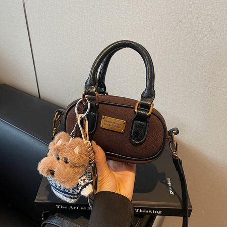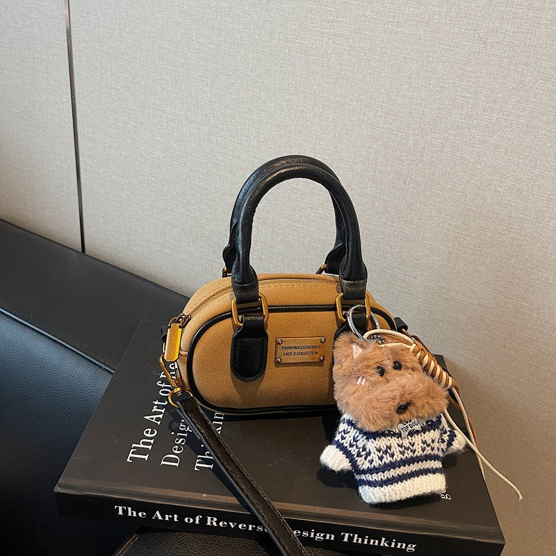 π Elegant, soft, and luxurious, this Korean-style suede handbag offers a high-end feel with versatile styling options. The bowling bag silhouette adds sophistication while the single shoulder strap makes it convenient for everyday wear.