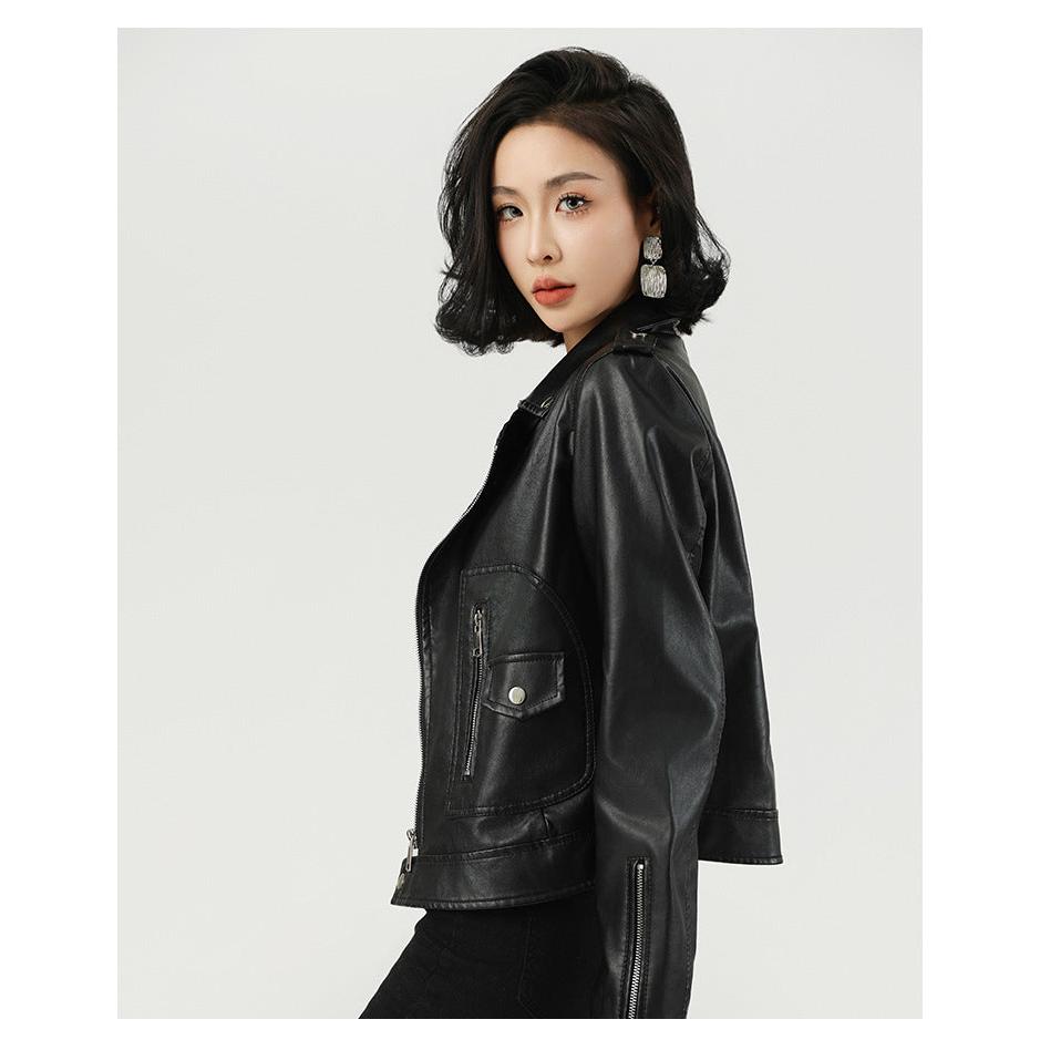 This short lapel PU leather motorcycle jacket is a timeless fashion essential. Designed with a classic lapel collar and slim structure, it creates a confident, edgy look that never goes out of style. 🏍️✨