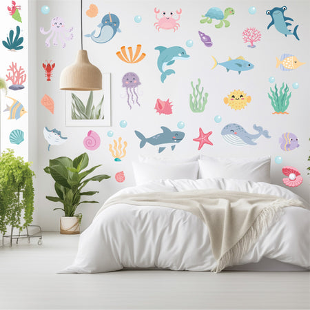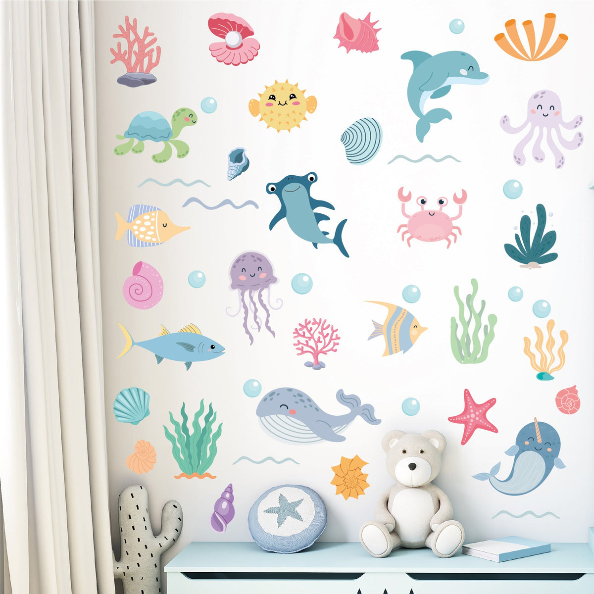 Dive into fun with these Marine Animal Cartoon Wall Stickers π π§! Ideal for childrenβs rooms, kindergartens, and early education centers in Nepal, these stickers bring the beauty of the underwater world to life.
