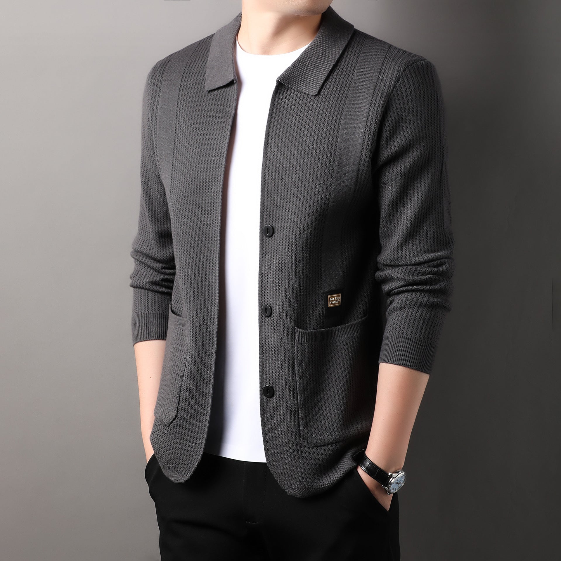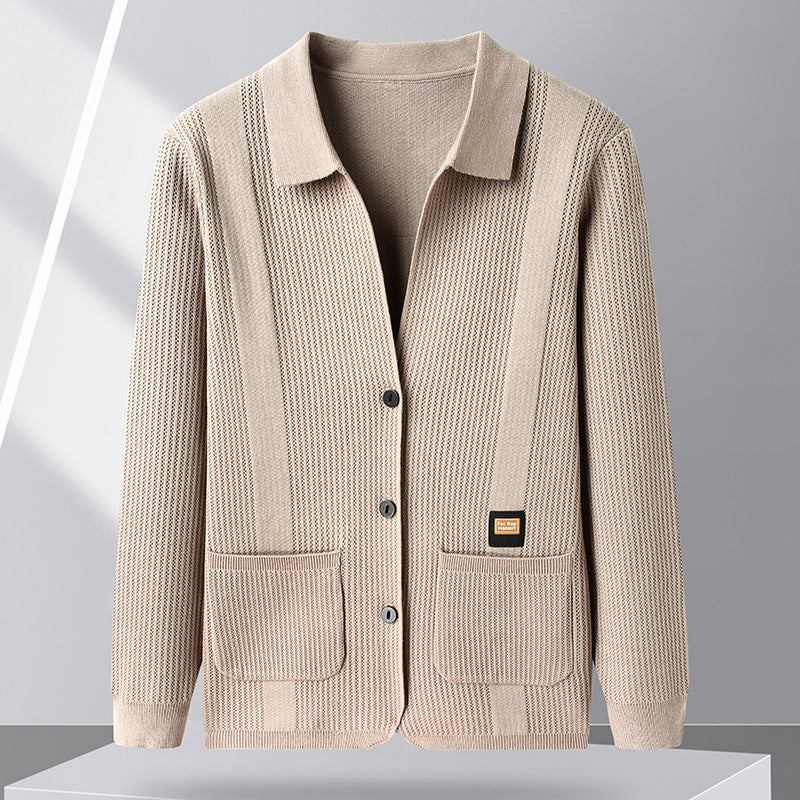 Classic comfort meets casual elegance in this men’s lapel cardigan sweater, designed for middle-aged men who value both style and practicality. Perfect for spring and autumn, it’s a versatile outerwear piece for everyday wear.
