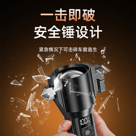 Equipped with a window-breaking safety hammer, itβs perfect for car escape situations or rescue operations. π£π οΈ The zoomable white laser beam provides powerful, focused long-distance lighting, while its compact and portable design makes it ideal for both home and outdoor carry. ππ‘