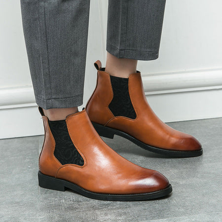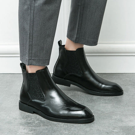 Plus-Size Chelsea Dress Boots β Carved Leather, Business Fit