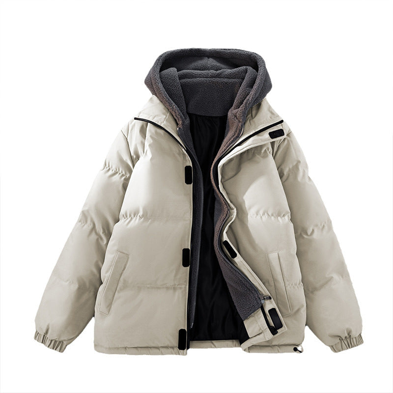 Elevate your winter look with this fake two-piece men’s puffer jacket, designed with a layered effect that’s stylish yet practical. Built for warmth and comfort, it’s fleece-lined, thickened, and available in plus sizes for an easy, casual fit.