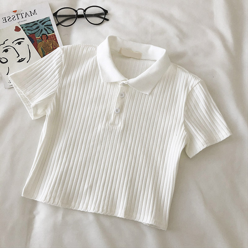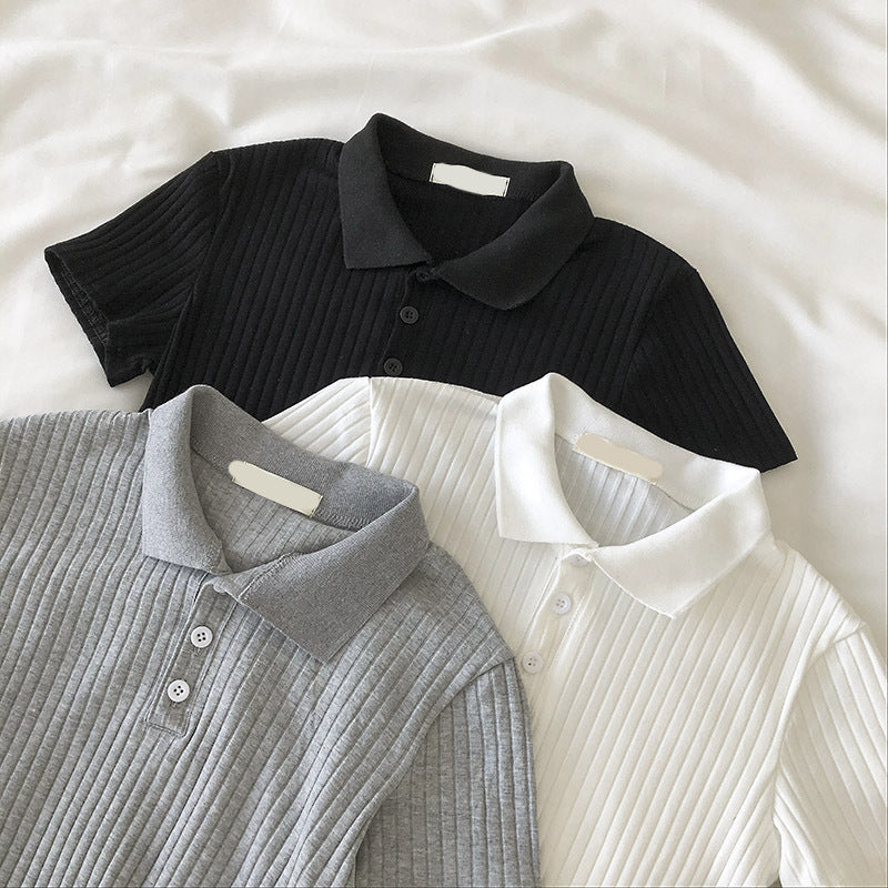 Slim Polo Collar Short Tee β Summer Ribbed Fit Top