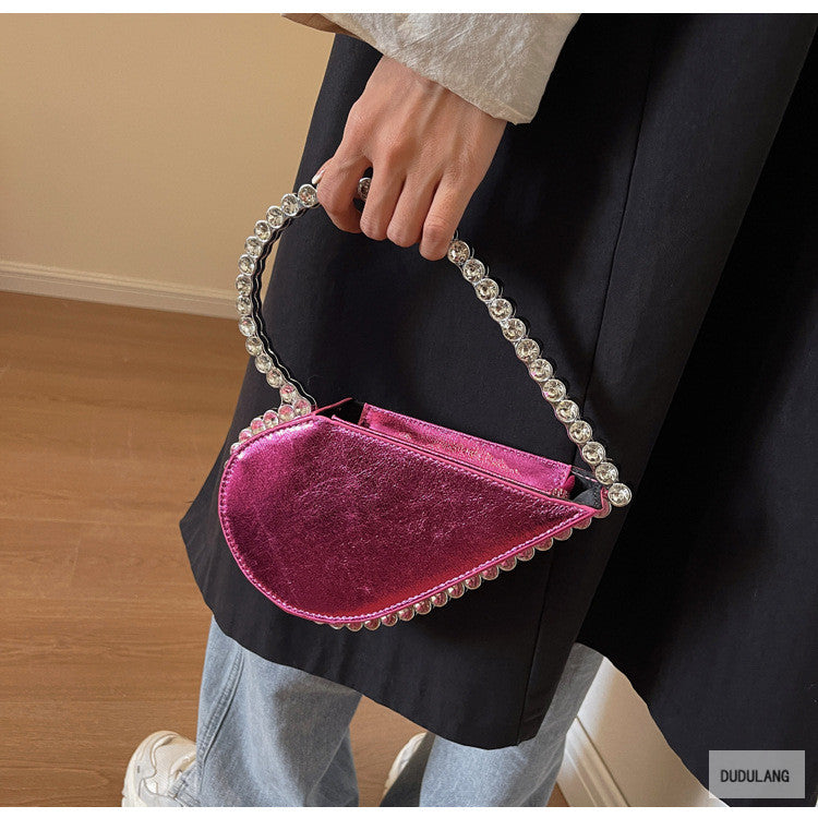 Step into elegance with this 2025 popular diamond-encrusted evening bag, designed for fashionable women who love luxury and sparkle. This high-end rhinestone handbag is perfect for socialites and party-goers seeking to make a glamorous statement at any event.