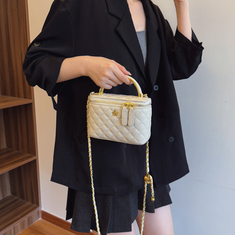 Make a bold fashion statement with this rhombus-pattern chain box bag. Featuring a structured box silhouette and eye-catching geometric design, it delivers a personalized and fashionable look that stands out effortlessly. ✨👜