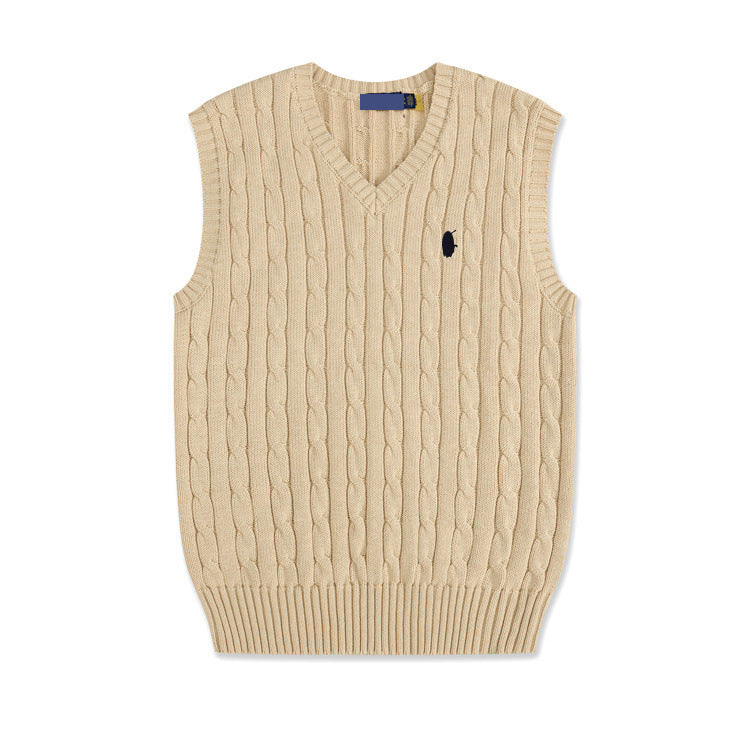 Stay warm and stylish with this pure cotton wool sleeveless sweater vest, designed with a classic twist-knit texture. Ideal for autumn and winter, it balances warmth with breathable comfort.
