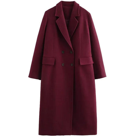 Women’s Korean-Style Red Woolen Coat