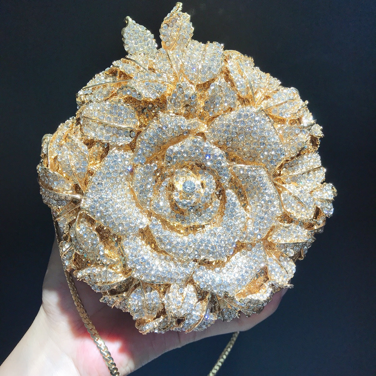 ๐ธ Small round, big sparkle! This flower-diamond clutch doubles as a cosmetic bag and shines all evening long.