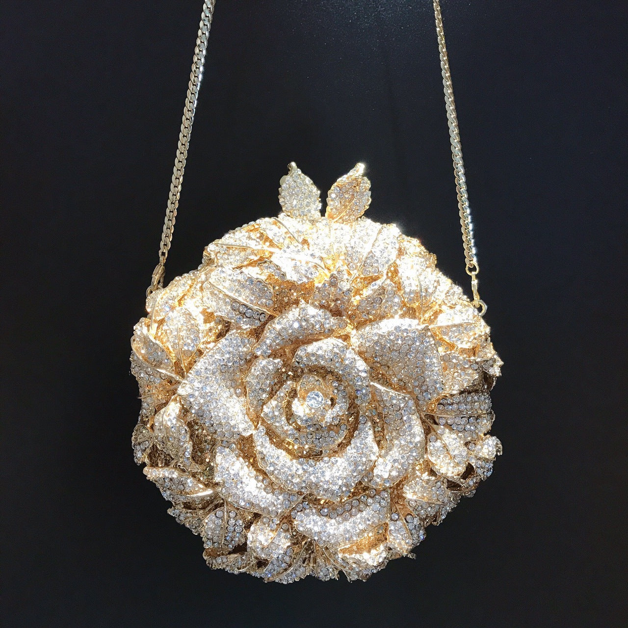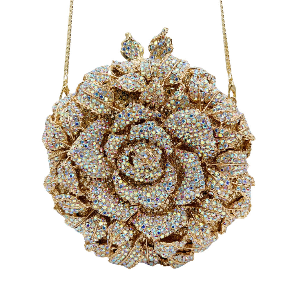 Floral Diamond Round Clutch โ Glam Hand Chain Bag