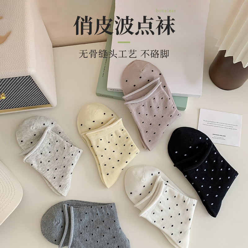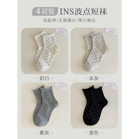 PACK OF 4 - Curled Polka Dot Socks for Women