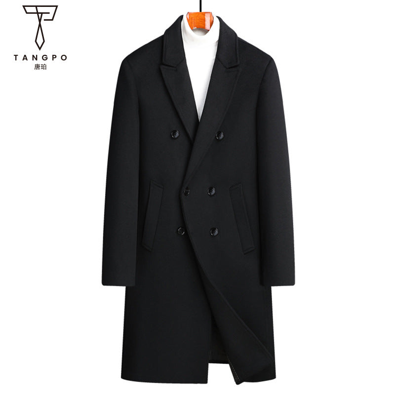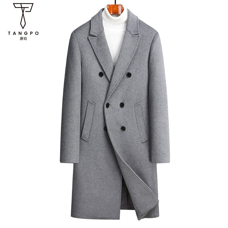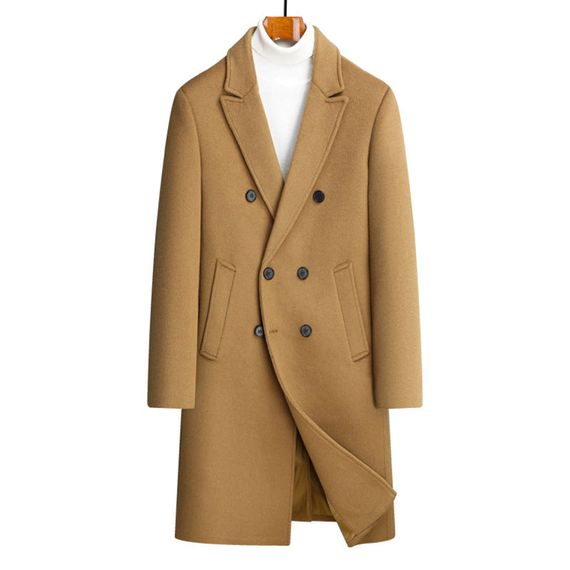 Customized Men’s Sheep Wool Coat – Long Double-Breasted Casual