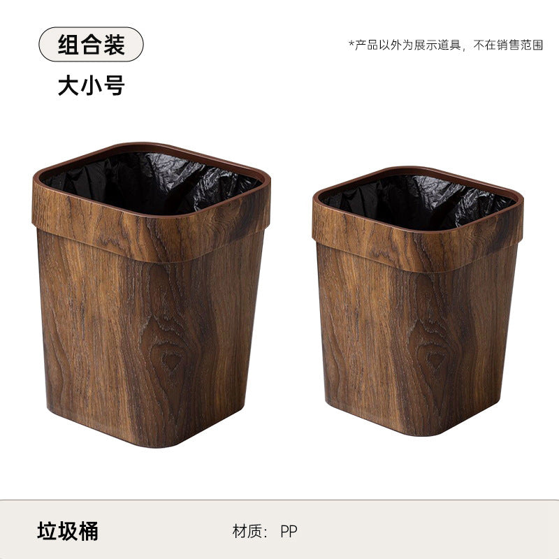 Wood Grain Trash Can with Pressure Ring