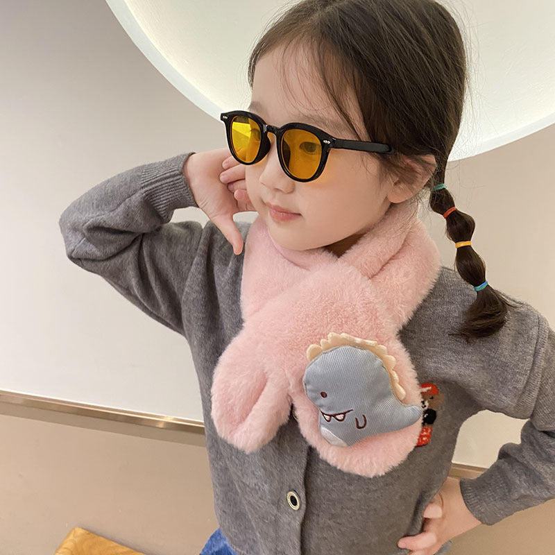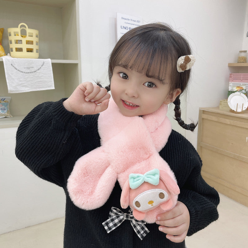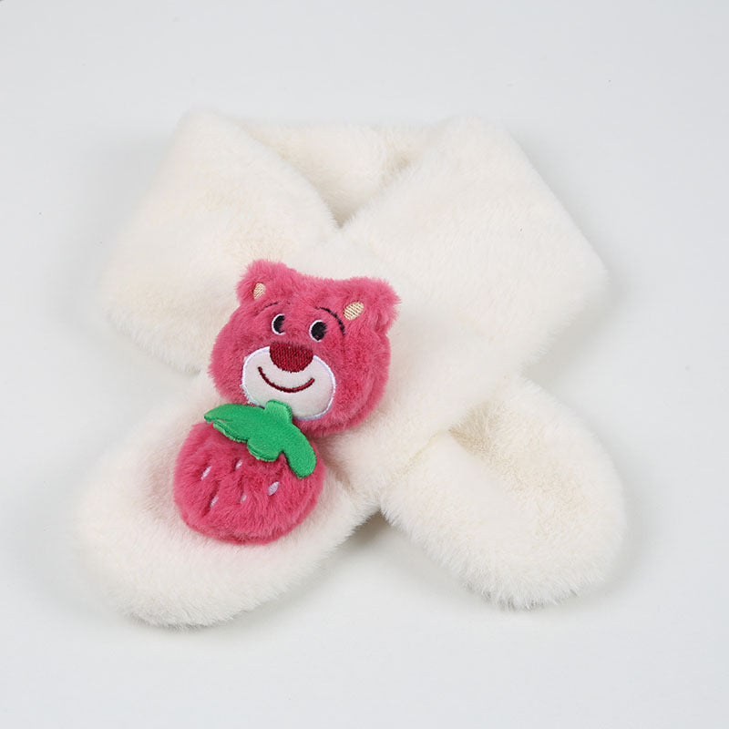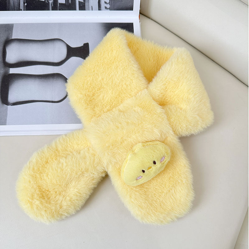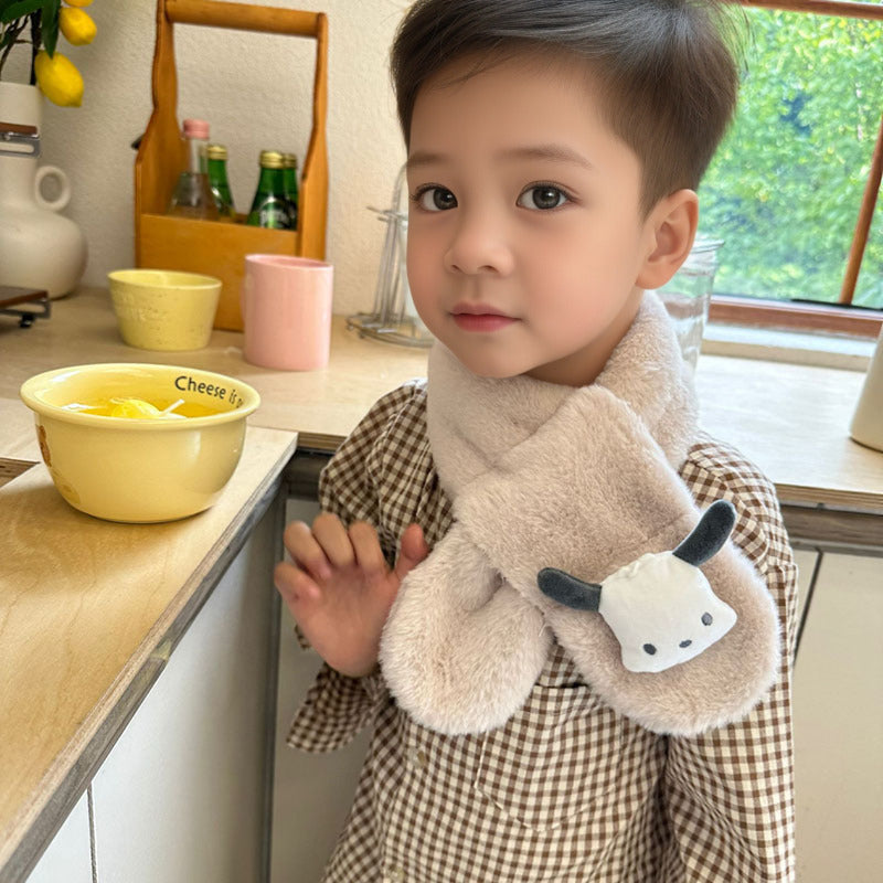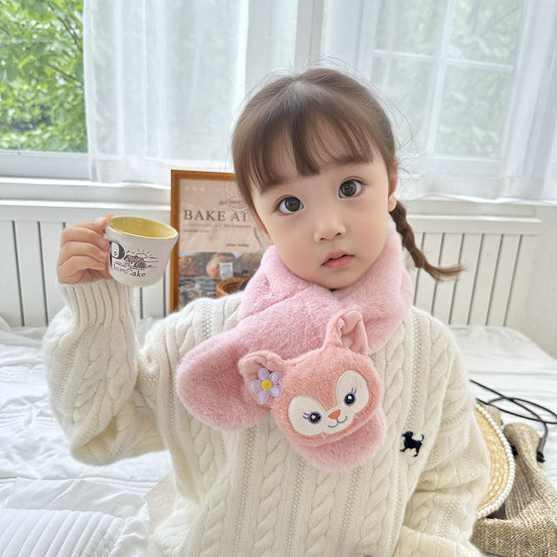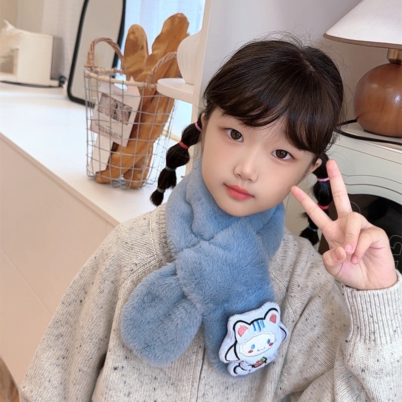 Cartoon Plush Kids’ Scarf – Warm Cross Neck Protector