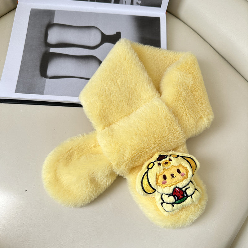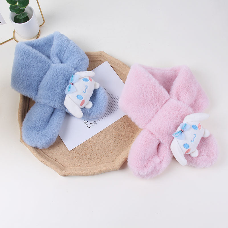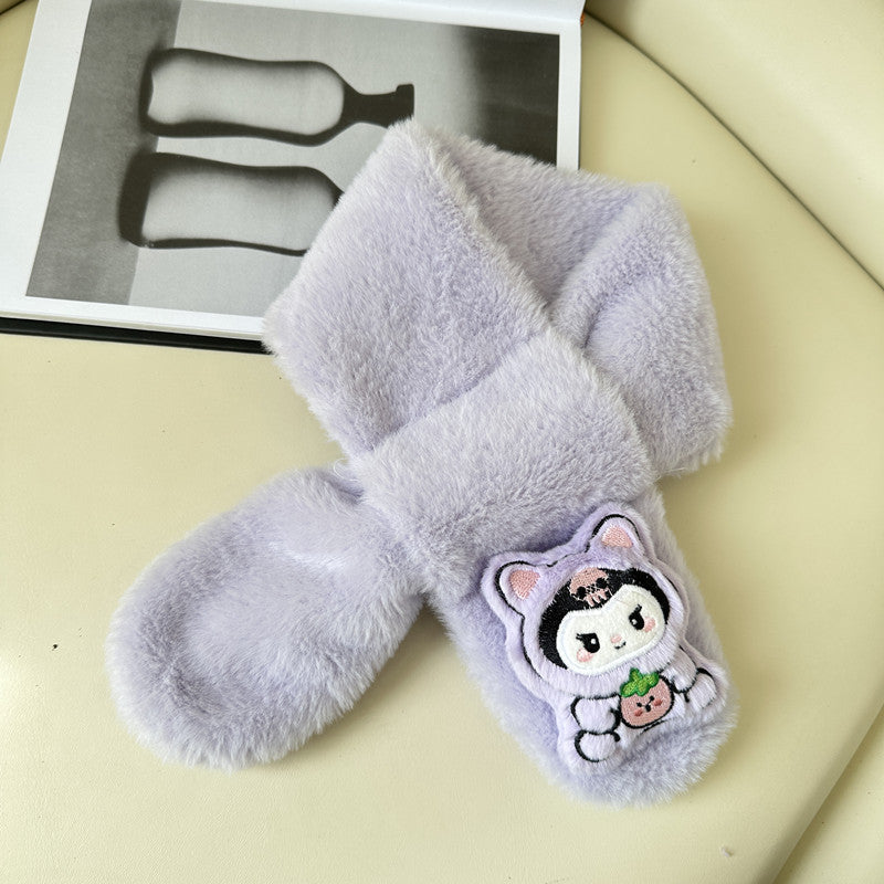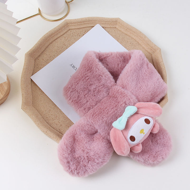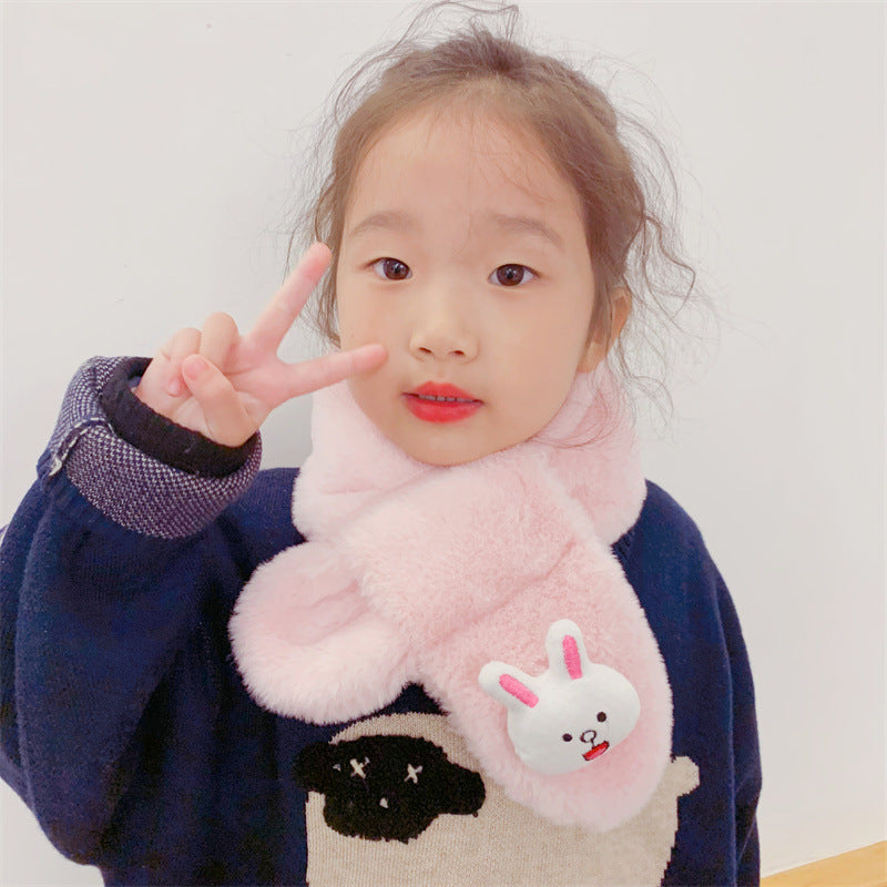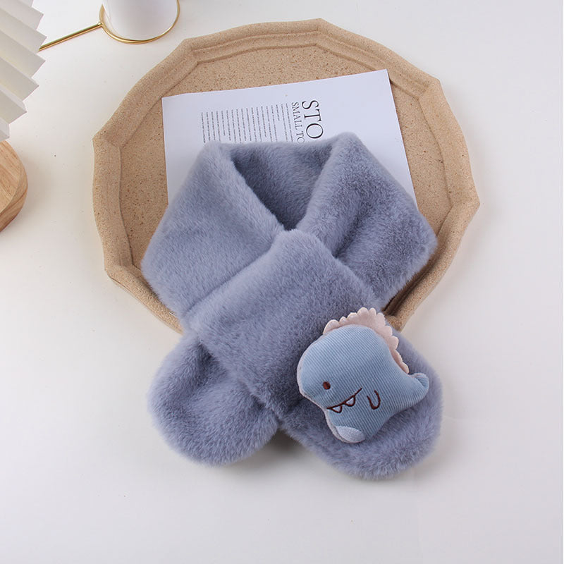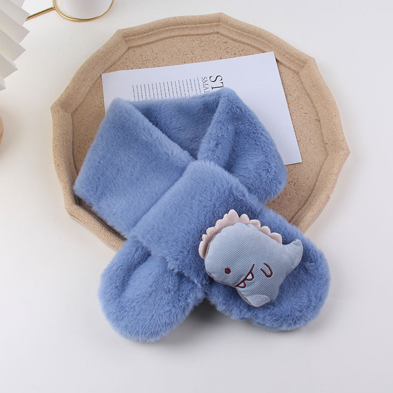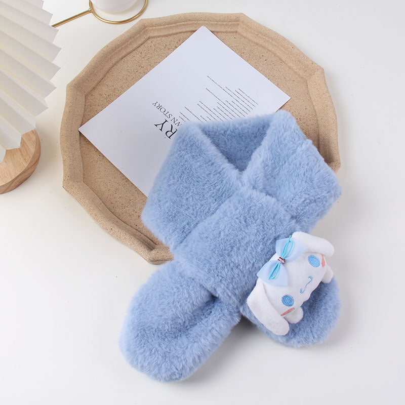 Cartoon Plush Kids’ Scarf – Warm Cross Neck Protector