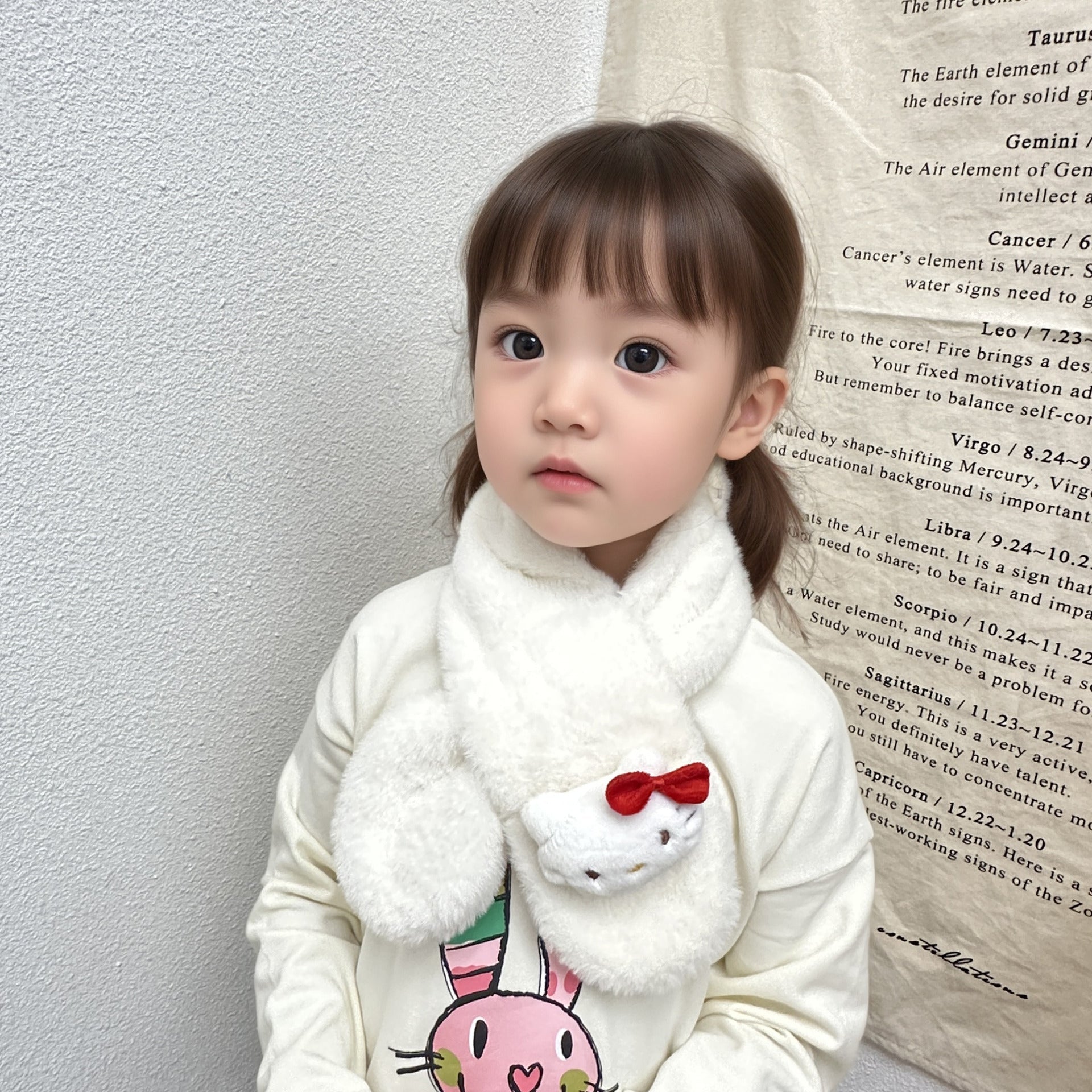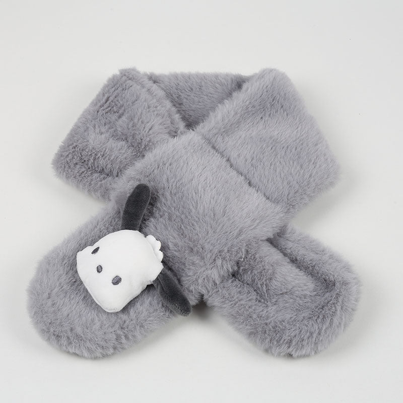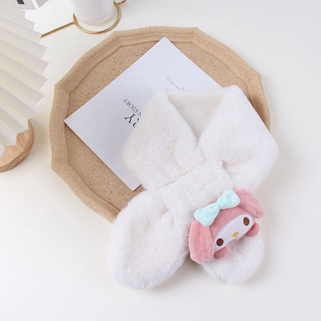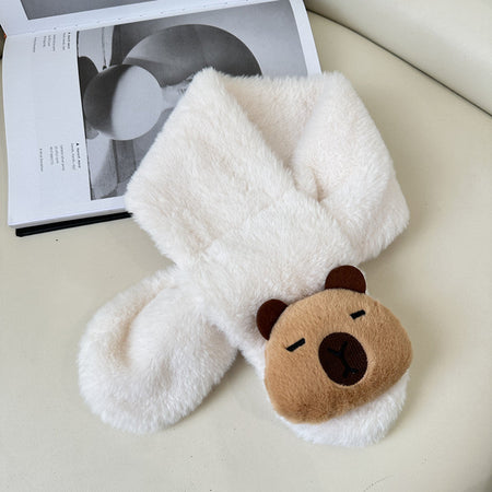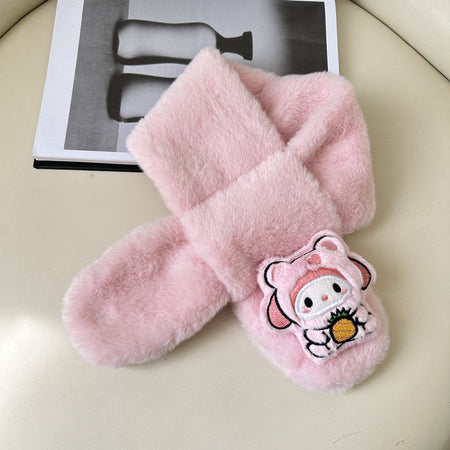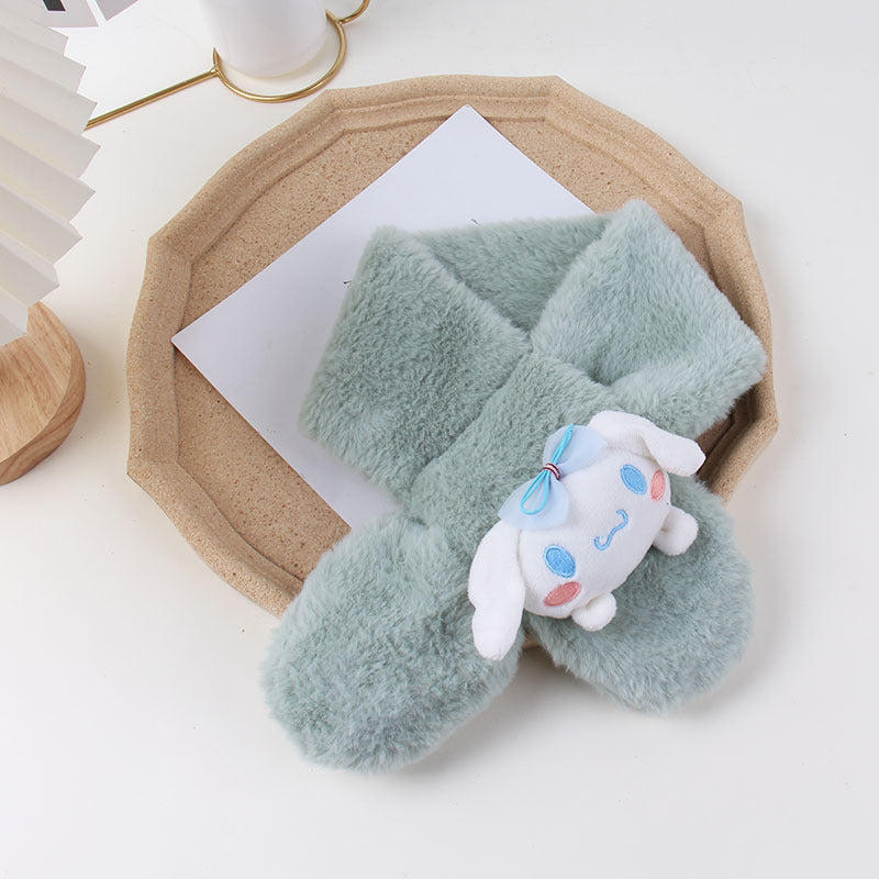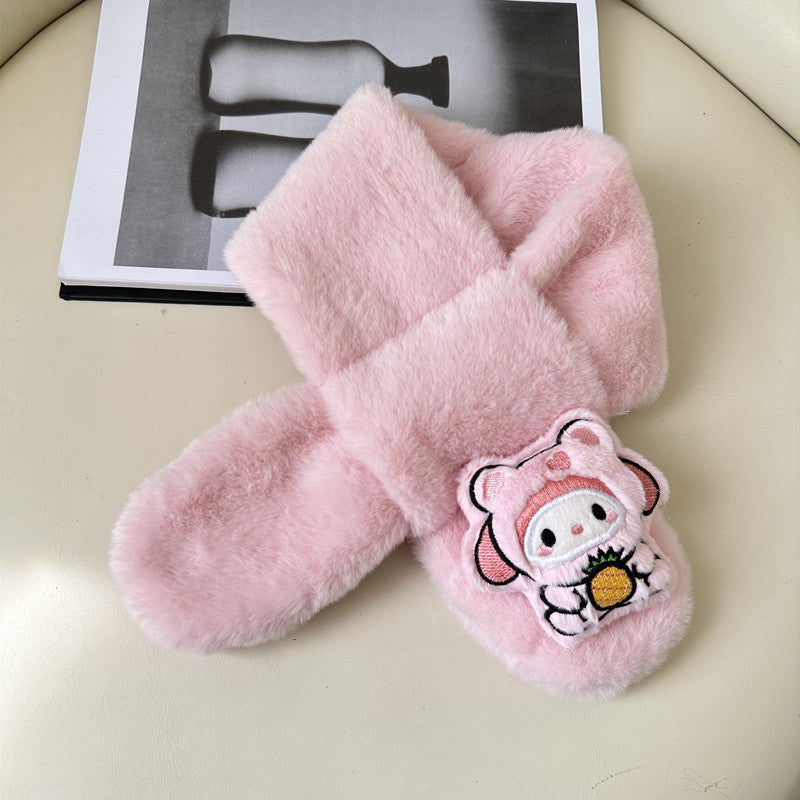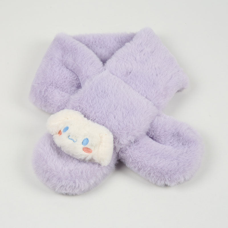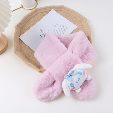 Cartoon Plush Kids’ Scarf – Warm Cross Neck Protector