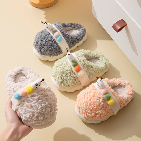 Crafted with soft plush material, these slippers provide excellent insulation while remaining lightweight and breathable. The non-slip sole ensures safety during indoor and light outdoor activities, allowing children to move freely without slipping 👟✨. The charming caterpillar design adds fun to any outfit, making them a favorite among kids.