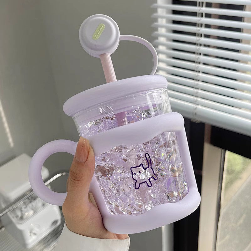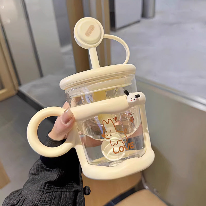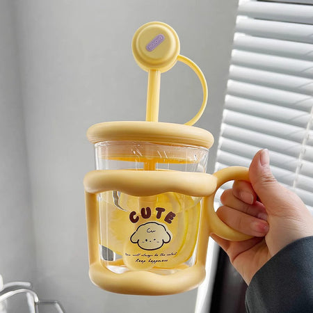 Cute Glass Mug with Straw, Spoon & Lid β Heat Resistant